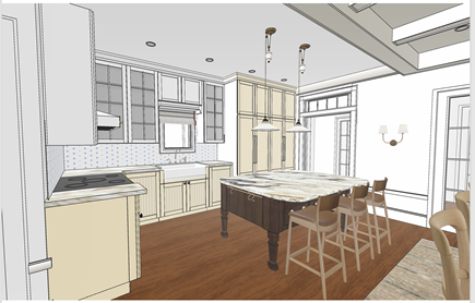 make the island wood add window above the sink lower cabinets yellow upper cabinets beige bright and warm no light switches no radiators no grills leather counter stools