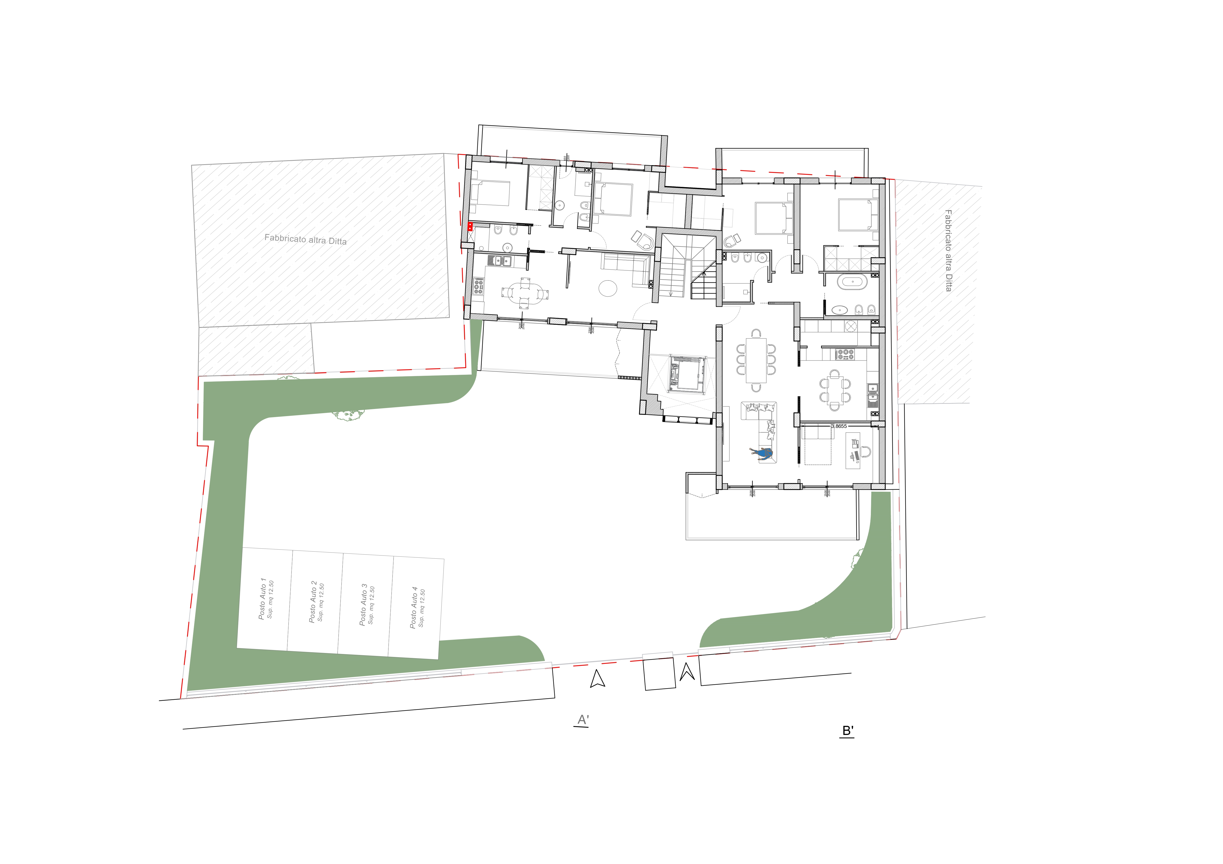 convert this floor plan into a realistic isometric 3d view of a full house show the space from an elevated angle with furniture walls and details visible rendilo pi realistico con colori neutri use the same furniture as shows on the plan do not change the orientation of the floorplan
