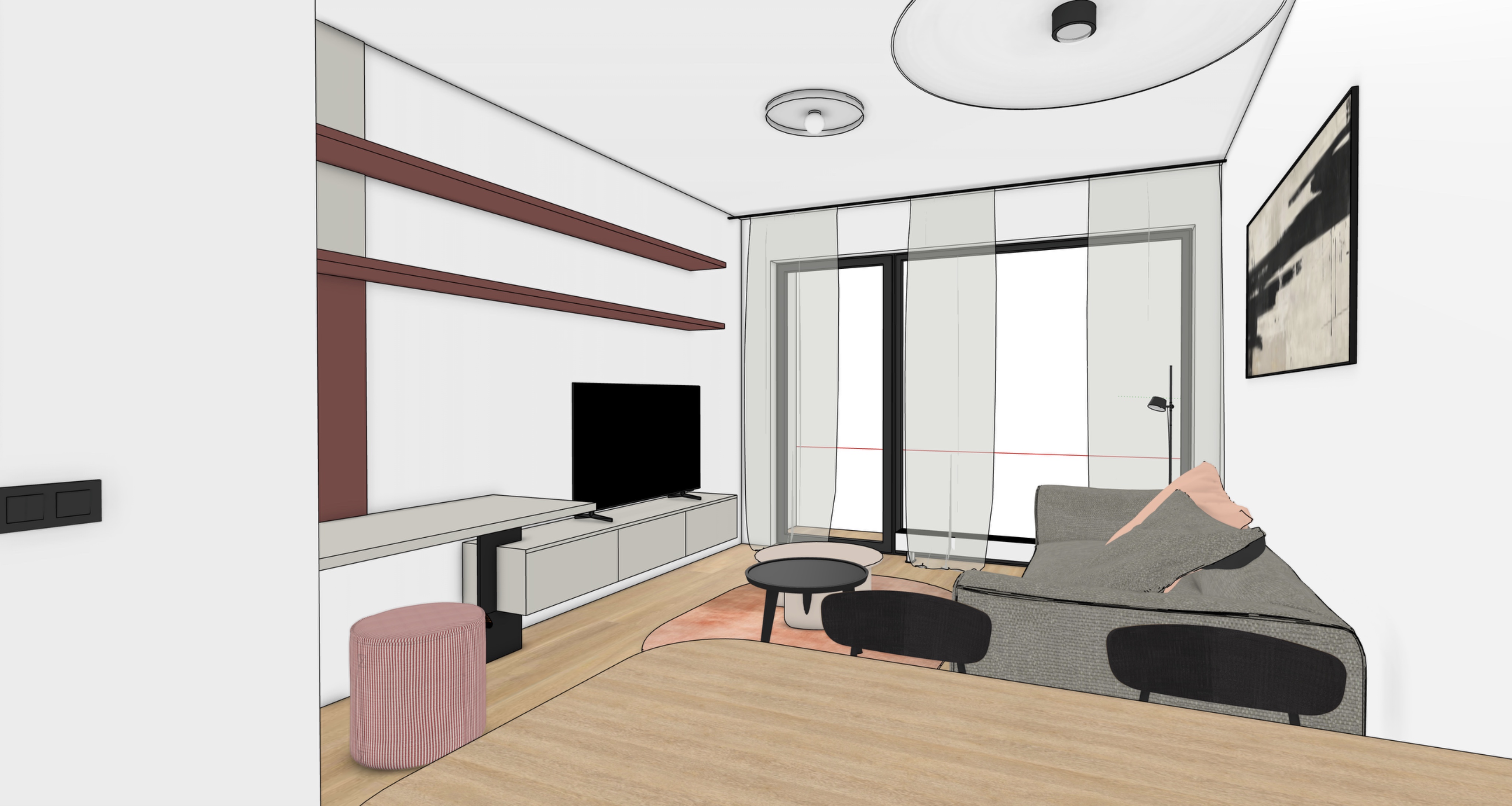 modern minimalist interior matt finishes daylight with soft shadows