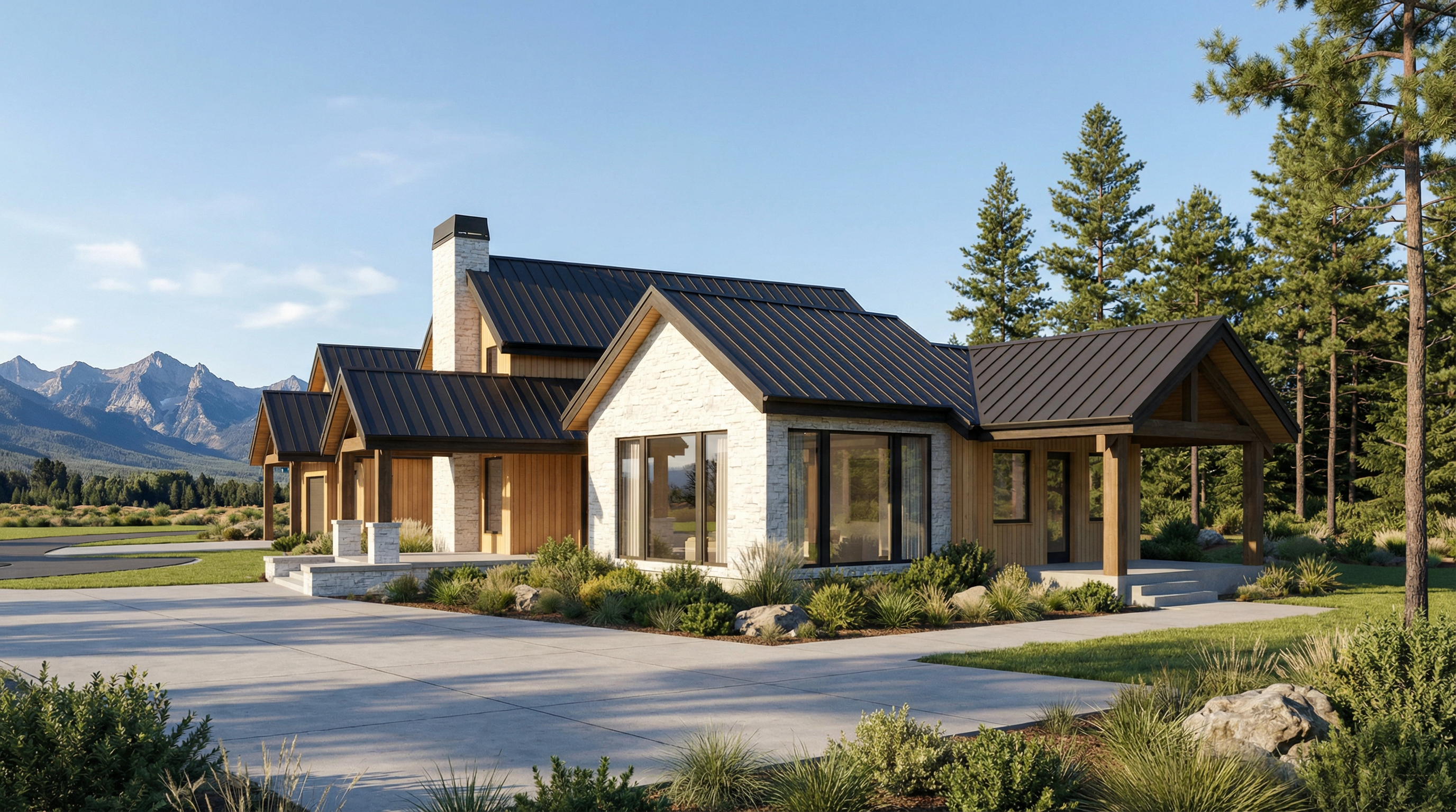 t s important to keep the sizes of everything the same change textures and materials but keep the sizes of everything the same make rock realistic its important to keep to scale this room is big do not change size of windows or doors do not add doors or windows do not change or add fixtures modern warm minimalist interior open living space wide plank white oak flooring soft natural sunlight casting long shadows across floor black steel framed glass partition wall floor to ceiling glass panels with thin mullions neutral color palette creamy white walls light taupe curtains contemporary living room with low profile white sofas warm wood floating shelves with minimal decor plaster fireplace with simple mantle soft ambient lighting large potted indoor tree clean lines high end residential design scandinavian modern aesthetic ultra realistic architectural visualization 8k detail exterior views are western montana add hearth to fireplace furniture should be close to camera the camera is in the corner and there is a couch there add living room furniture add a rug place art on wall remember to not change the scale its very important to keep the sizes the same