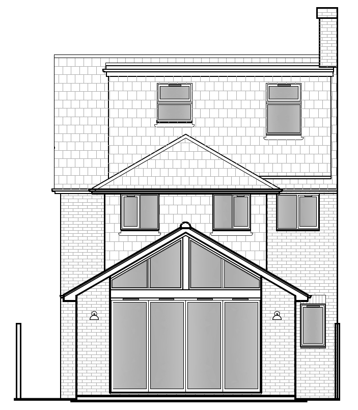 house is in a traditional style with dark red face brickwork with dark tuscan roof tiles to main roof ground floor zone has a feature gable end windows above ground floor bifold doors in dark great aluminium trims dark terracotta coloured tile hung wall finish to first floor wall finish dark terracotta coloured tile hung wall finish to loft dormer walls at roof level house has dark grey window frames white fascia with black gutters nice bright sunny late afternoon with soft mood and shadowing nice some landscaping elements