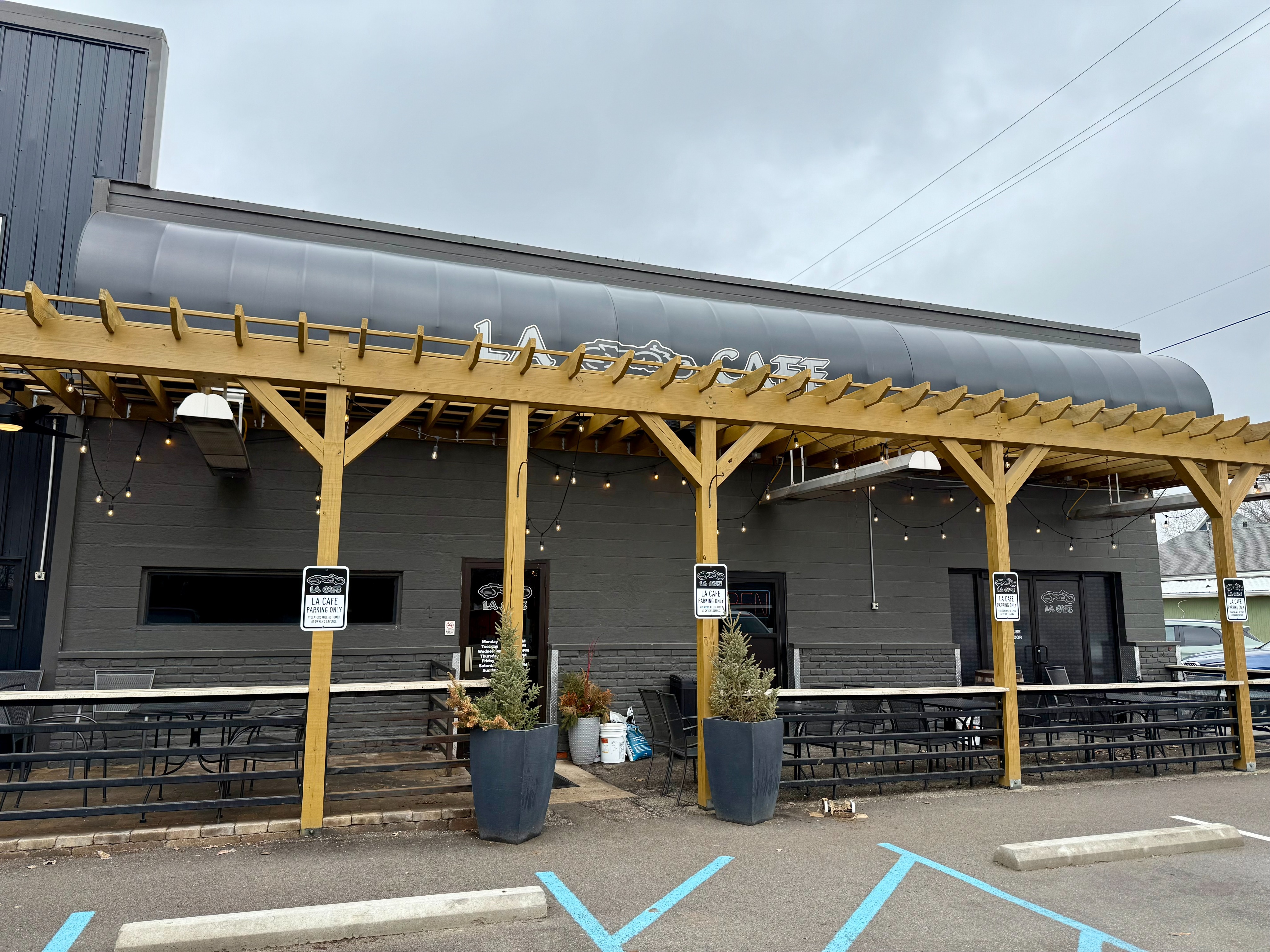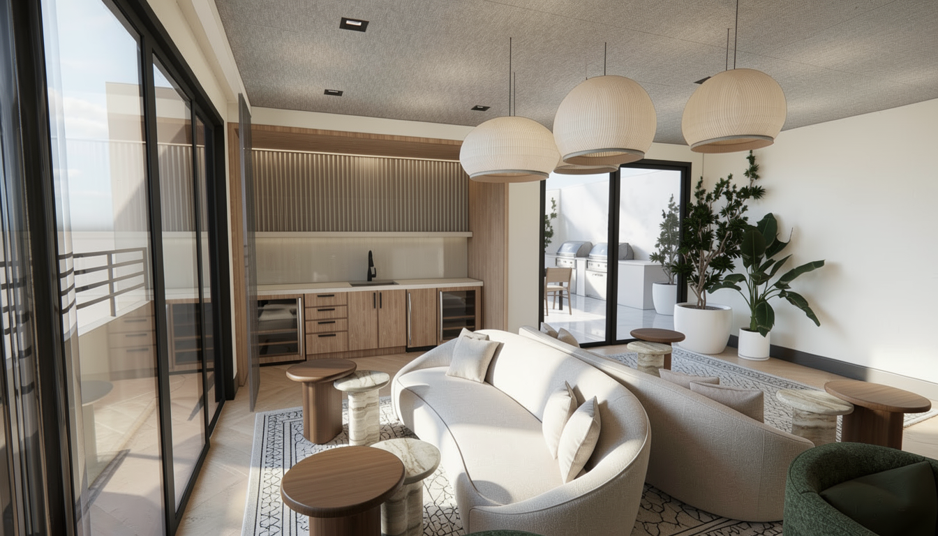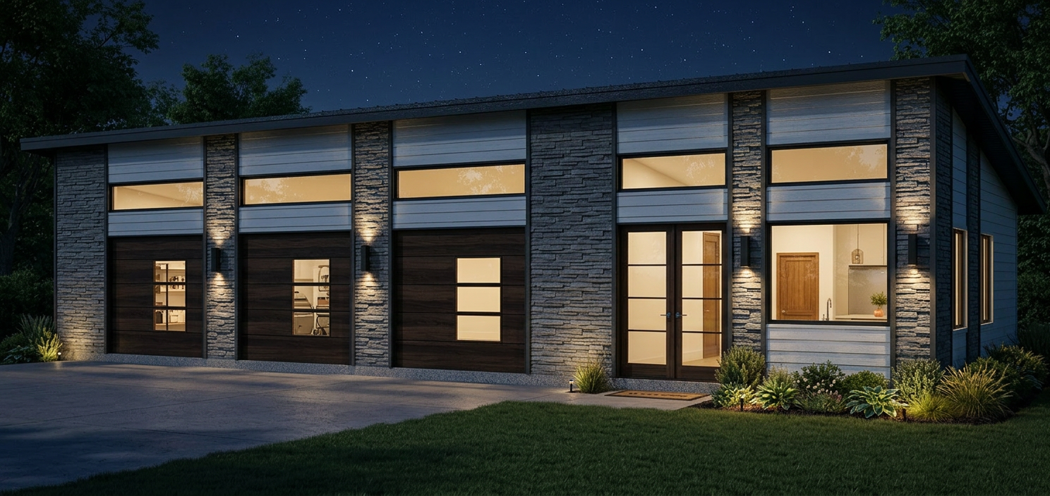 turn this into a professional grade photo and make it feel like indiana in the spring do not change anything about the structure but please remove the potting supplies and bags from front by door