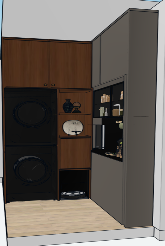 use lights to light the place ceiling lights use white color for the firniture and the two washers