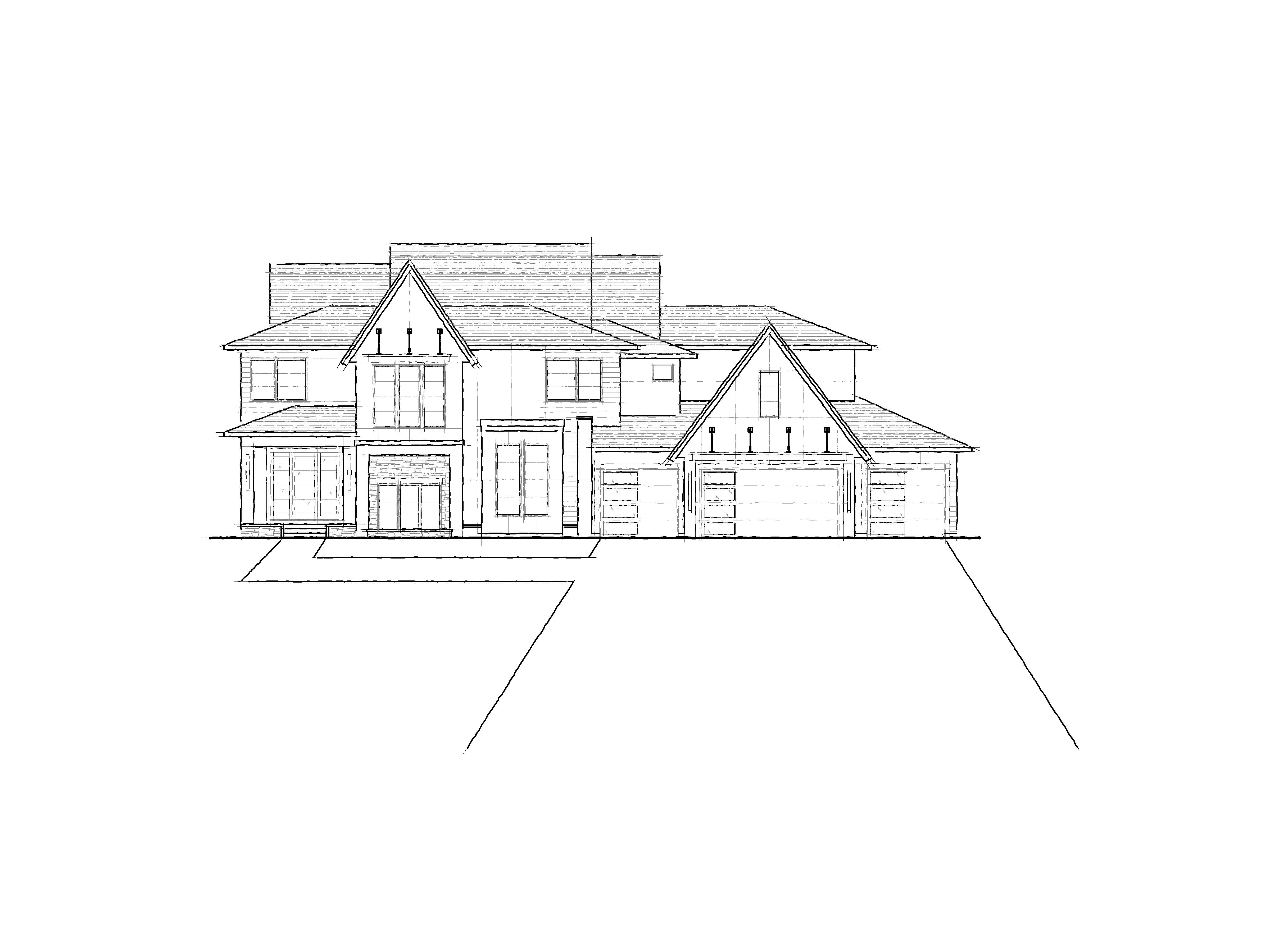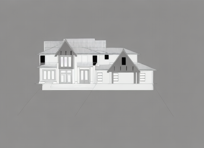 add clean simple architectural shading to the uploaded 2d line drawing keep the drawing black and white with no added color apply soft uniform shadows on roof planes under eaves and beneath overhangs to create depth add light directional shading on wall surfaces to define form using subtle gradients that do not overpower the linework keep shadows minimal crisp and consistent with a single light source such as upper left daylight do not alter the lines or add textures only add simple tonal shadowing to enhance the clarity of the elevation architecture