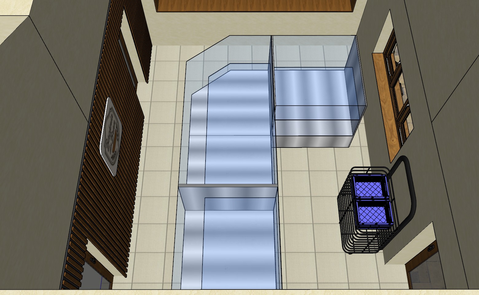 this is a top view oicture make it real and add lights and some random meat and lactate products in the glass display place some round bread on the upper self