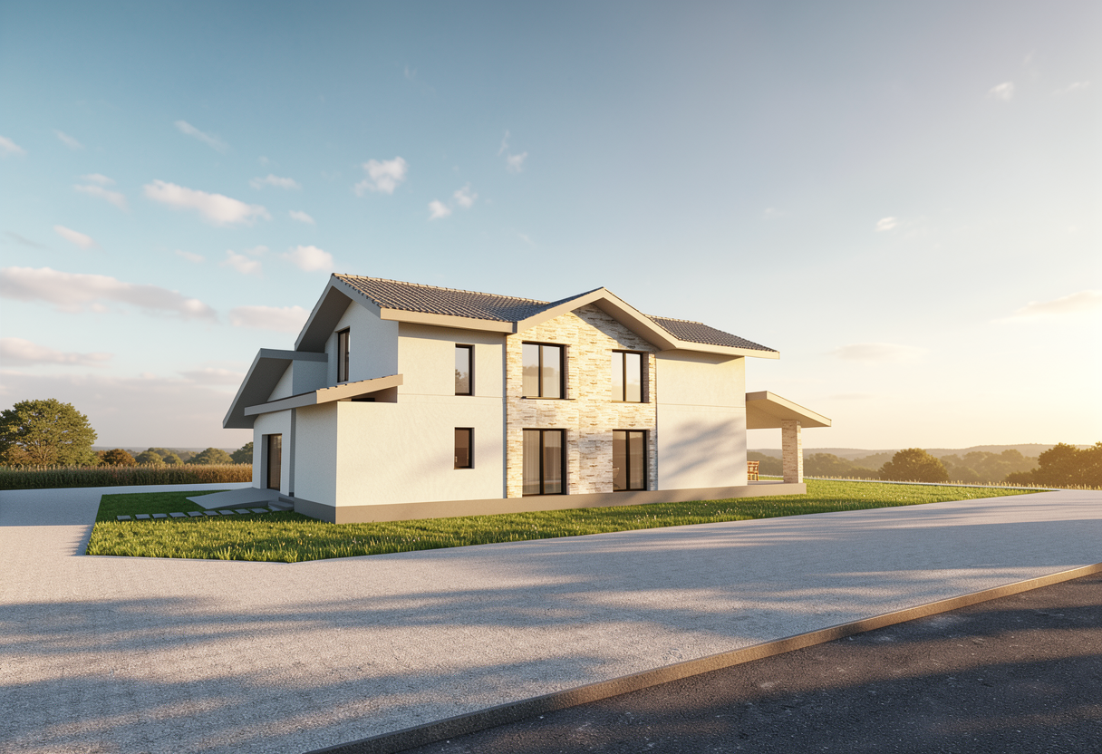 sunset view with cleaner streetscape in realistic architectural style