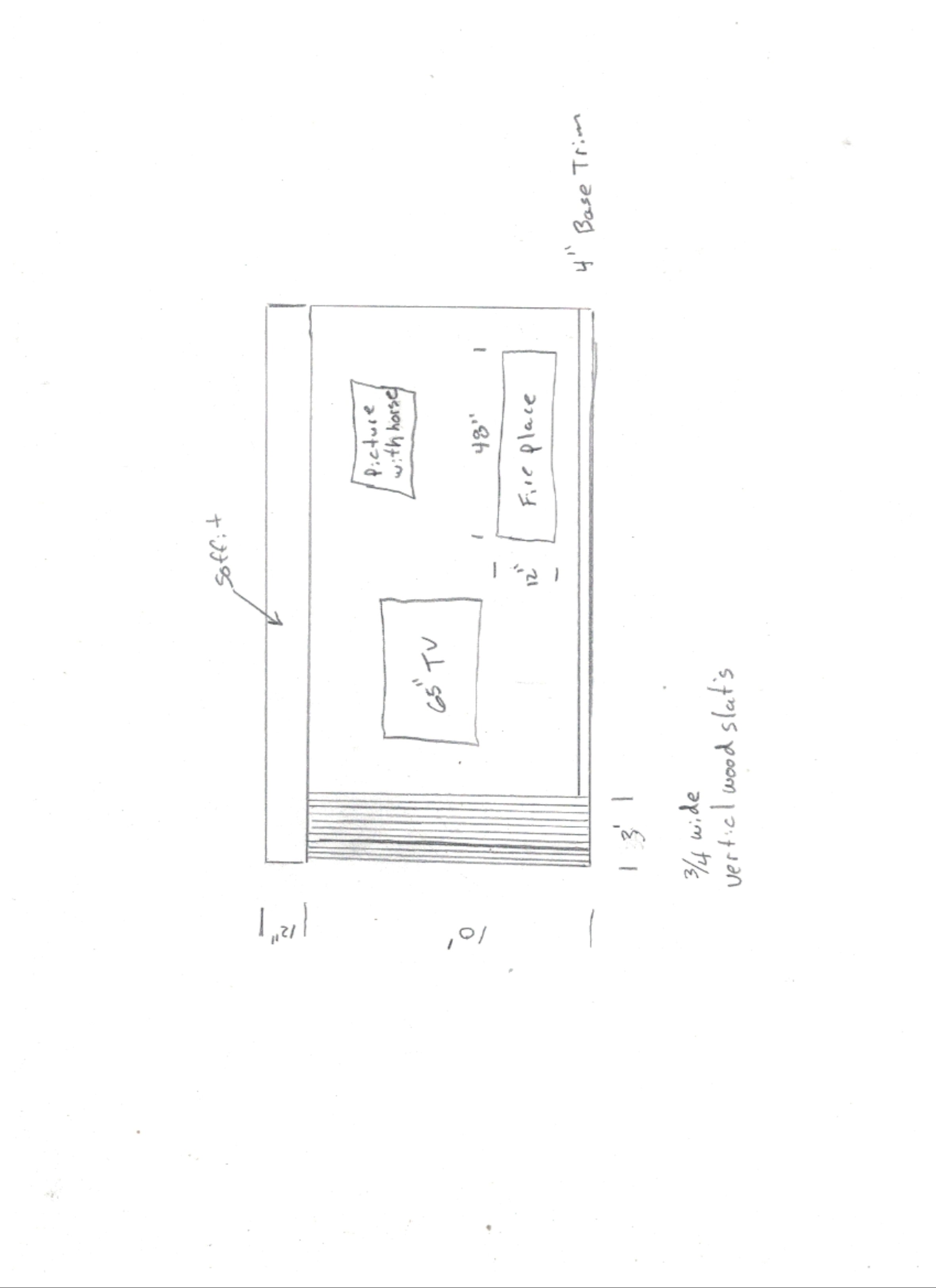 entertainment center wall light brown walls 65 flat screen tv with beach scene 48 wide 12 high linear electric fireplace 30 x 30 picture of a horse above the fireplace 3 4 wide light brown vertical wood slats