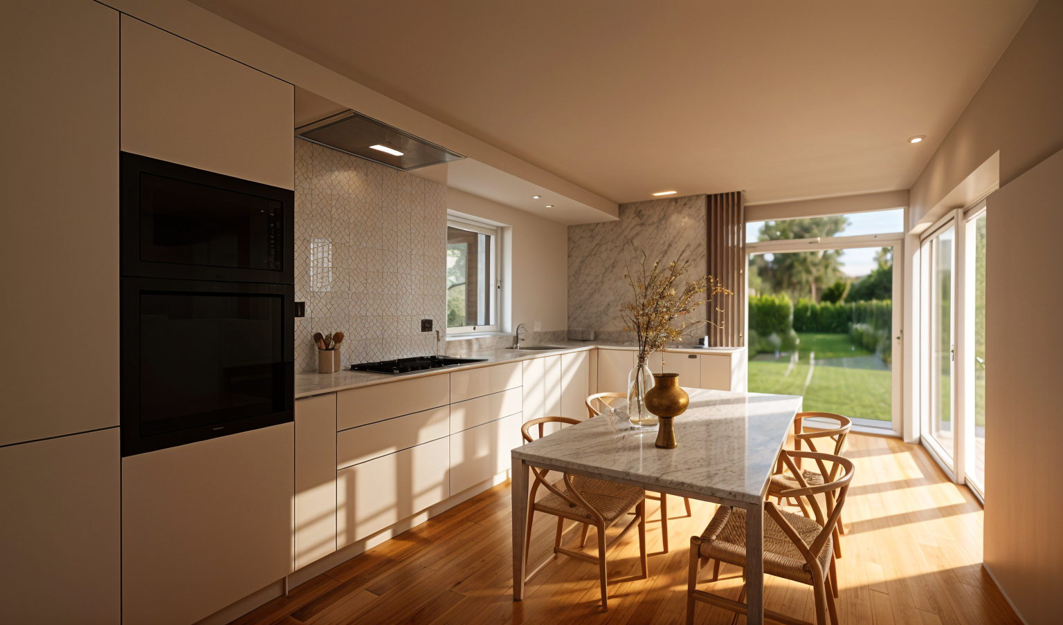don t change the original photo of this kitchen room just render the color make it more smooth