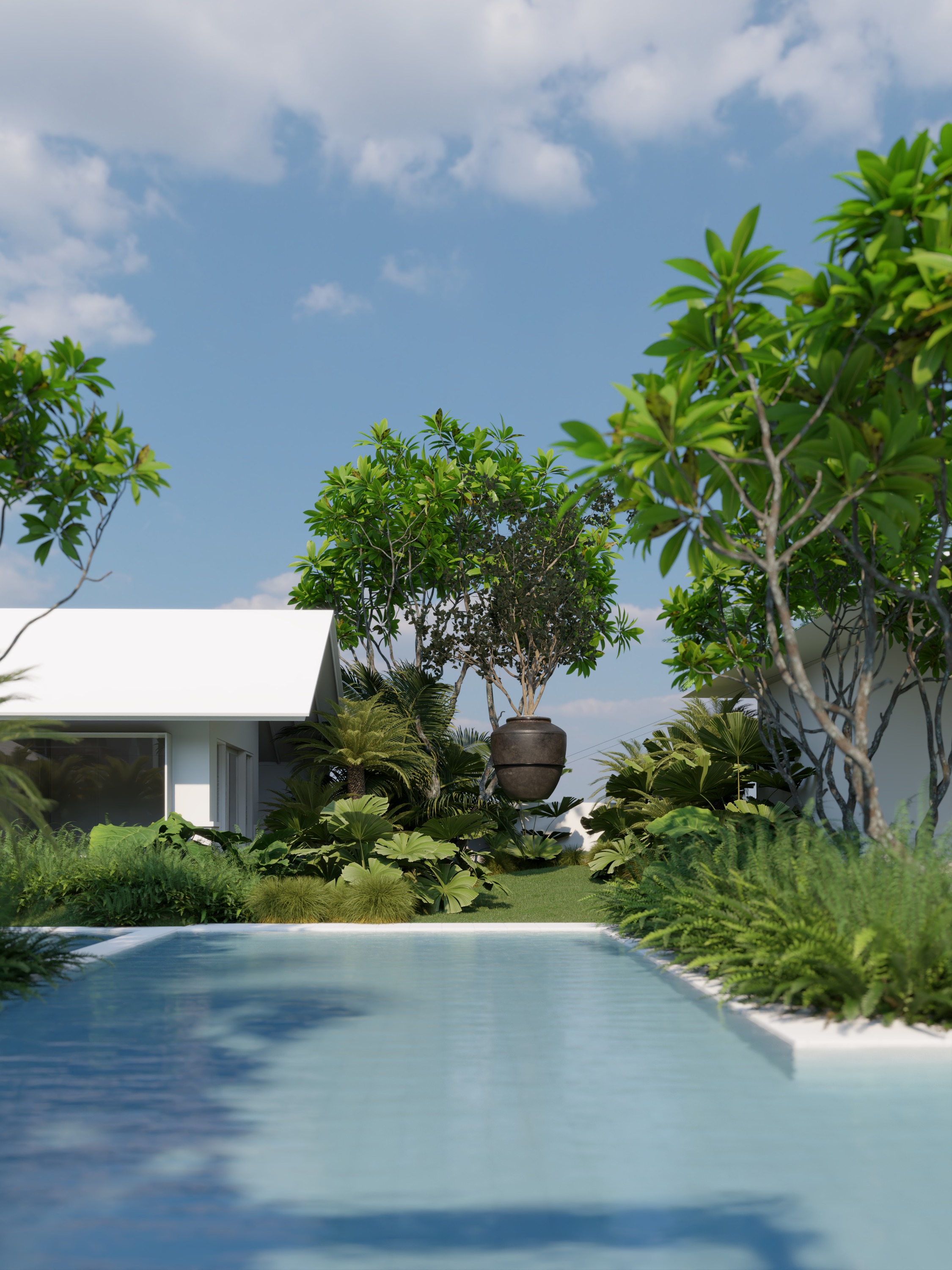 enhance the realistic texture and night lighting with psychedelic indirect light to the vegetation and trees set the camera focus into f 35