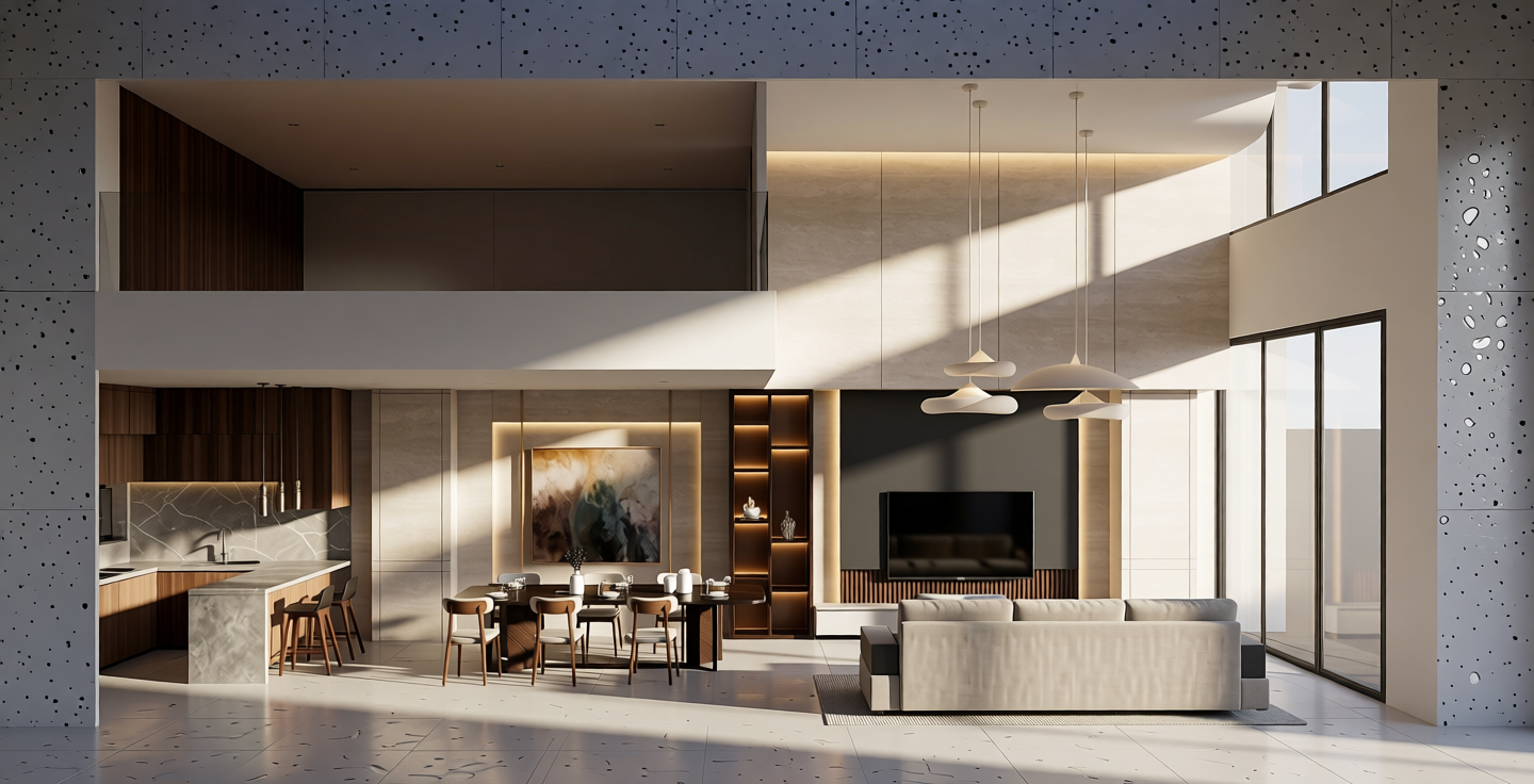 enhance the photorealistic look and blend the elements into noon ambience maintain the original elements make the trees more varied and natural with group of trees and variation of high