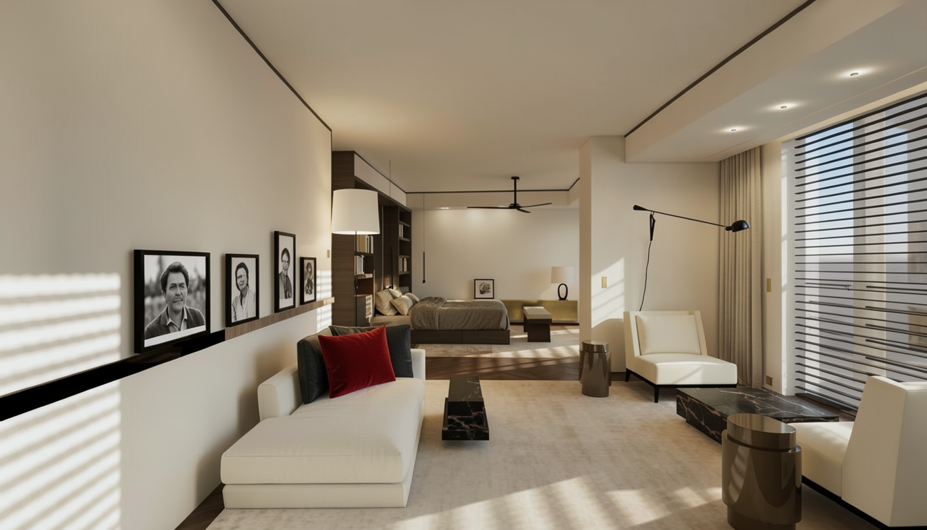 replace the black and white images with more abstract black and white paintings make the lighting a bit better