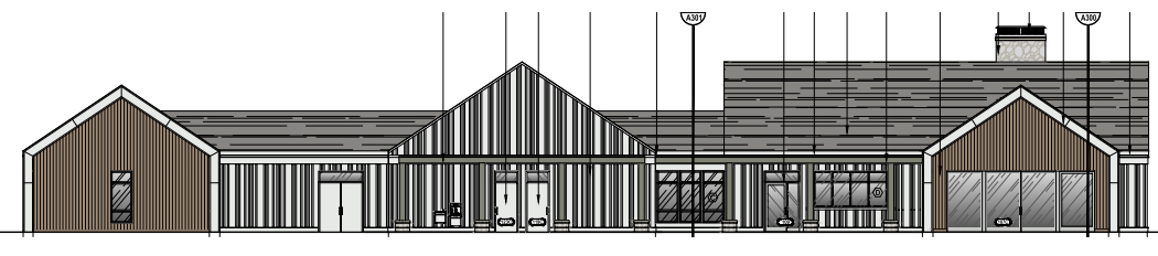 rustic modern design set in a serene countryside use a soft warm color palette with earthy tones wooden paneling rich oak brown roof slate grey windows clear glass with subtle reflections doors crisp white surrounding landscape lush greenery and wildflowers atmosphere peaceful and inviting bathed in the gentle glow of a golden sunset