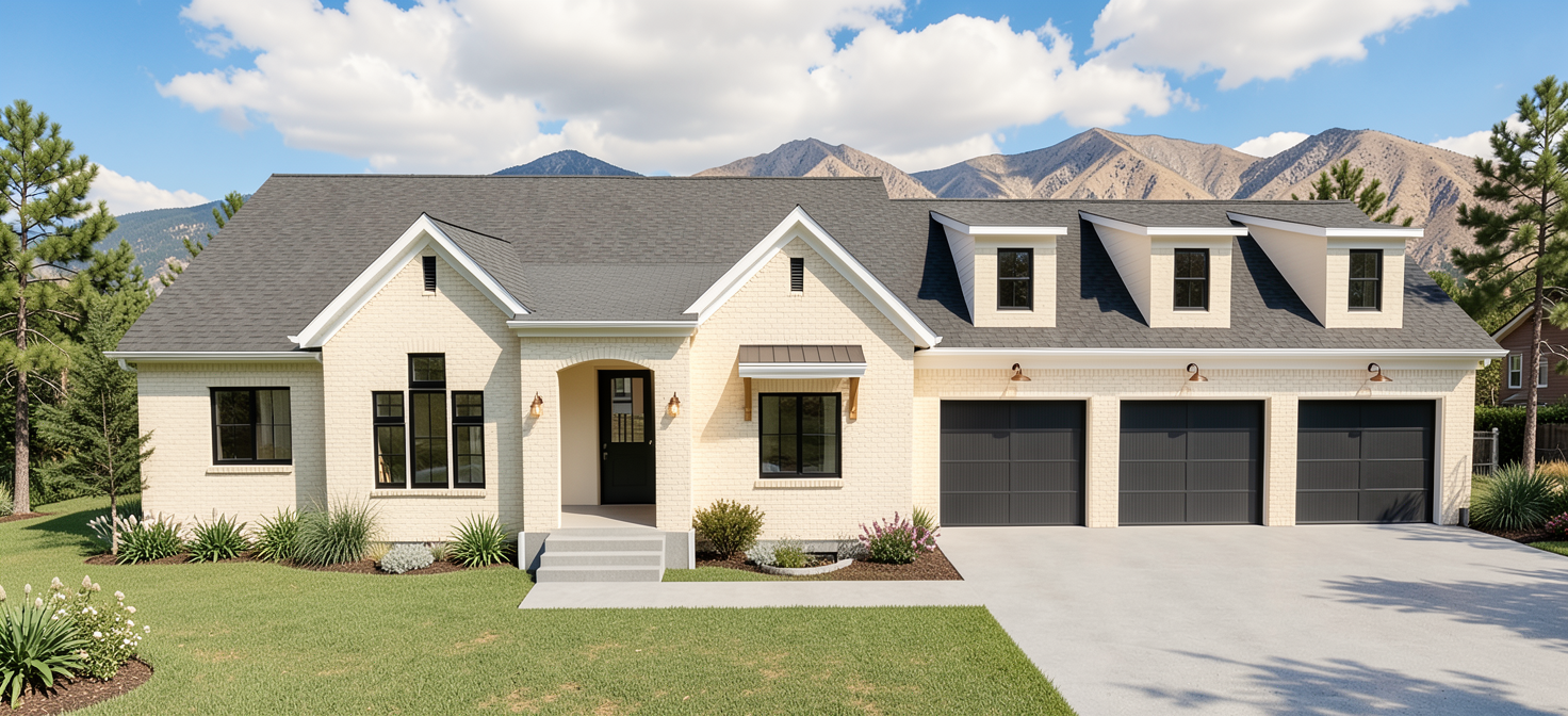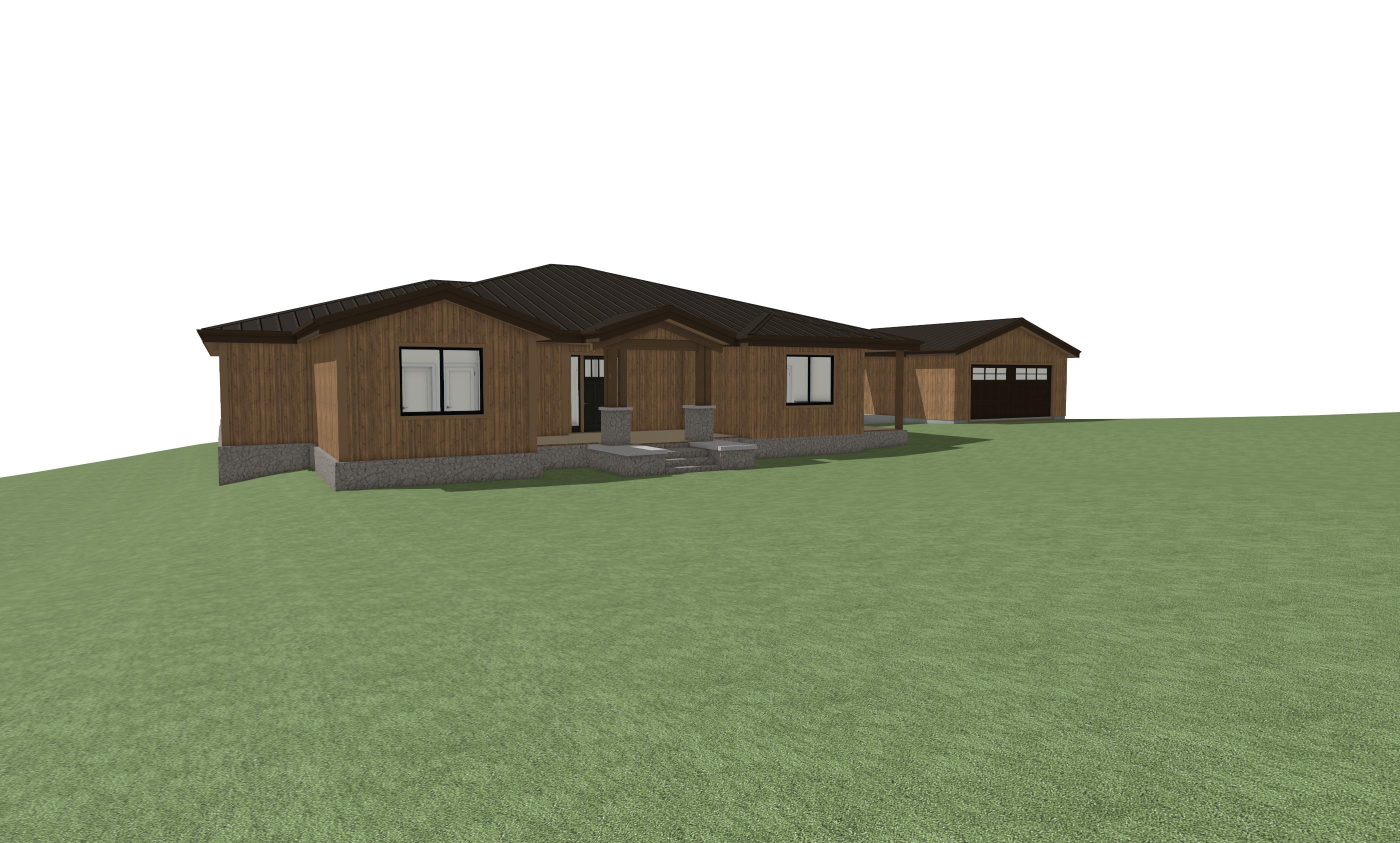 make exterior wood board and batten and roof to be dark brown shake roof