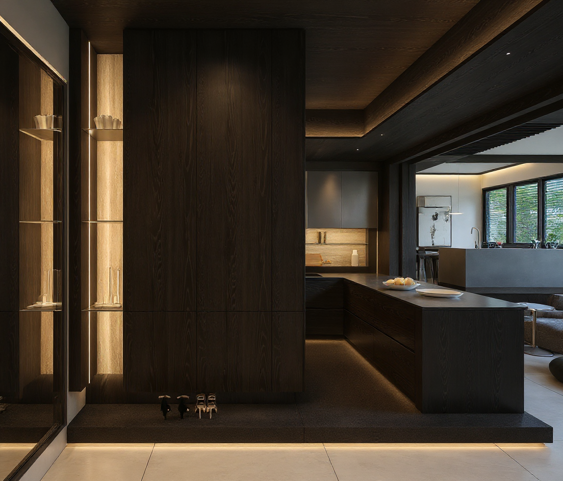 industrial design dusk dynamic interior lighting field in foreground with airstrip