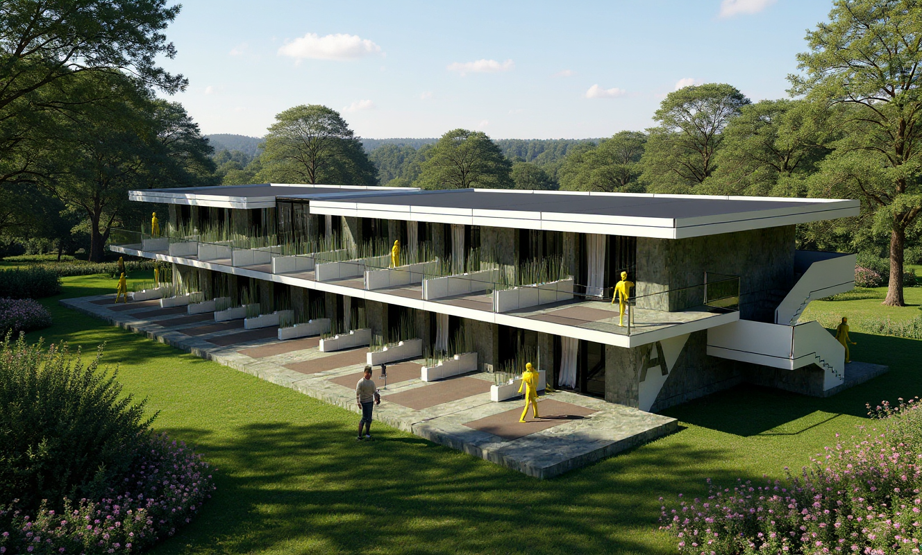 exterior shot lower level is dark gray big light fixtures include landscaping