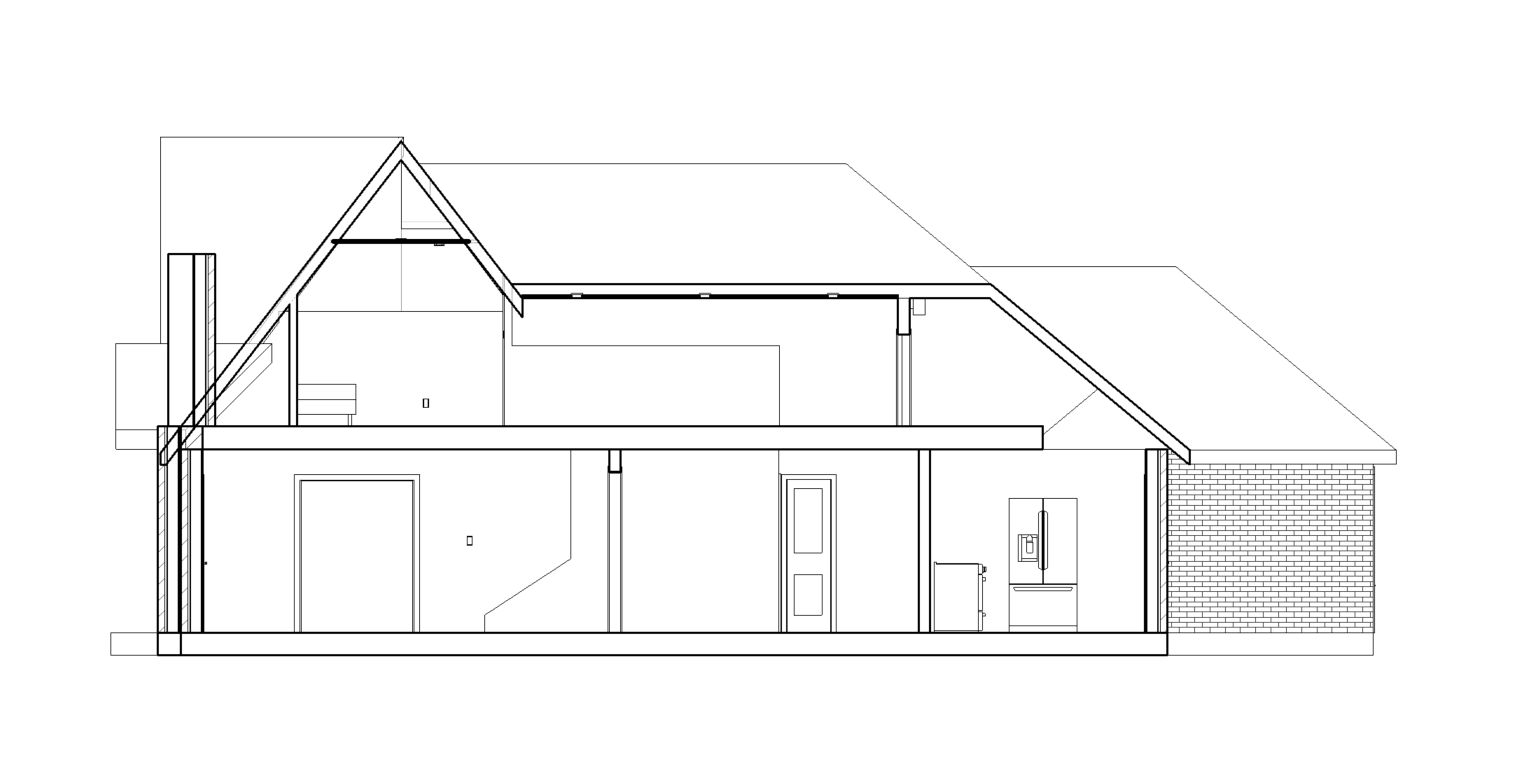 renontion to 1920 bungalow section cut through the center to show new atair up to a new bonus roo under roof