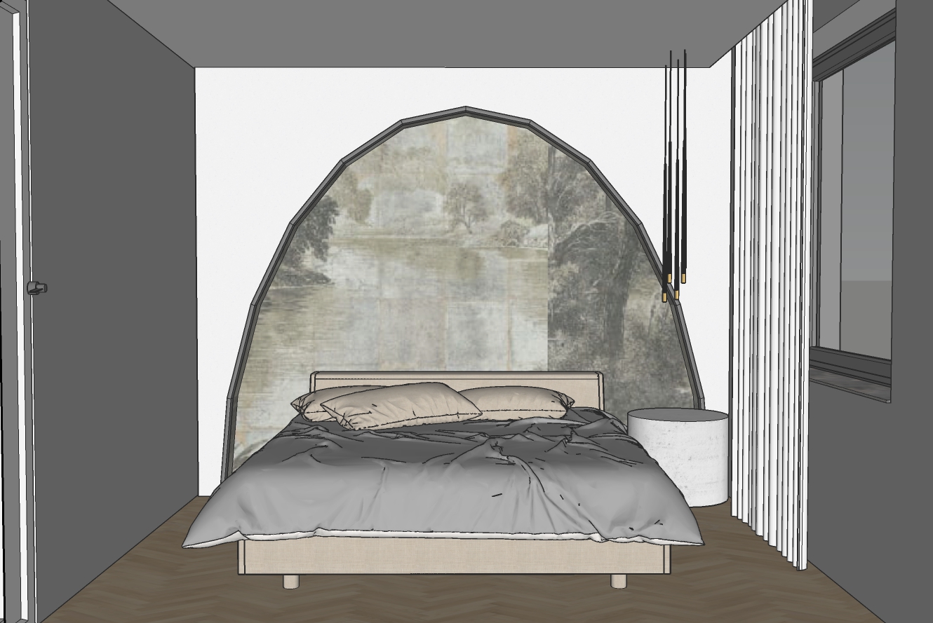 a super cozy bedroom with corect lighting and details