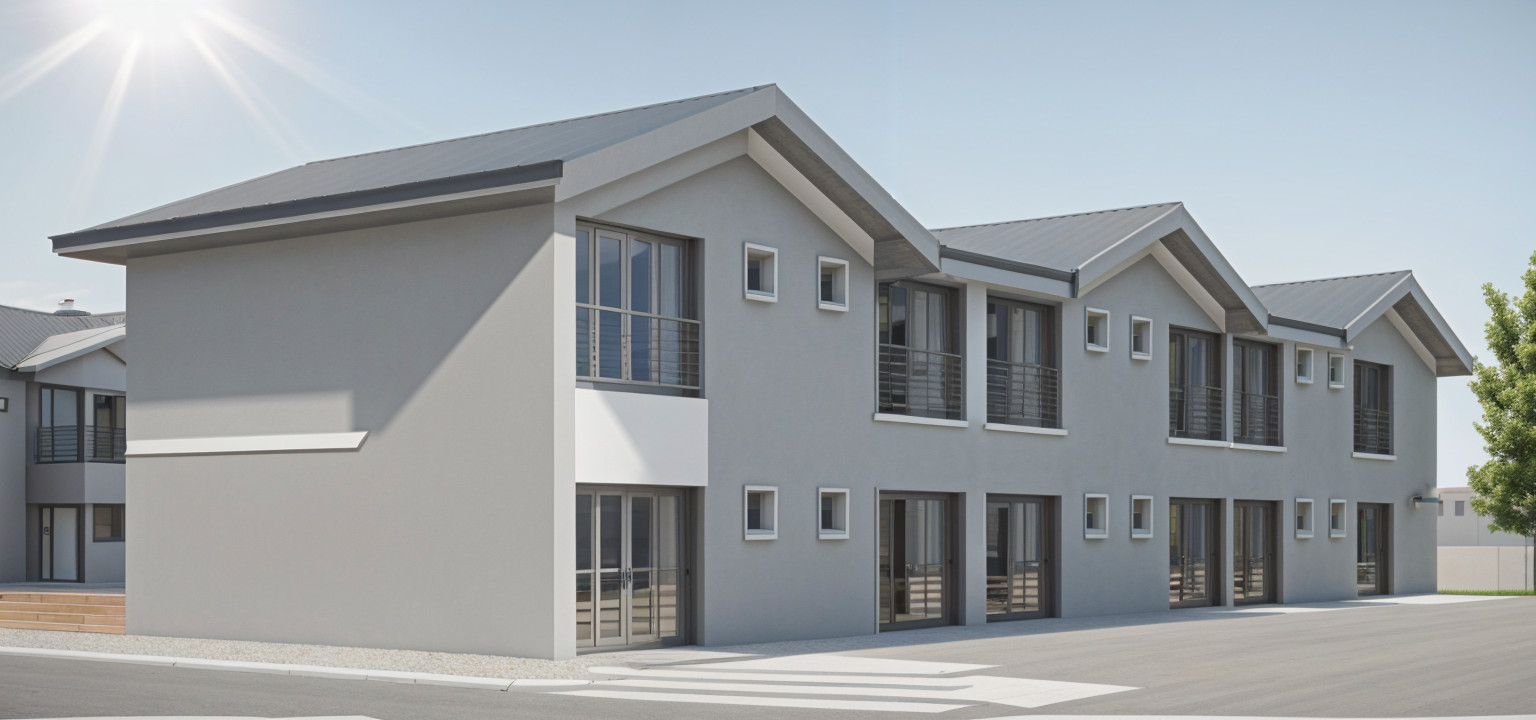the orange area is a red brick extension with large windows and doors the light grey areas are glass and should be darkened glass the white areas should be kept white do not add unncessary detail architecture