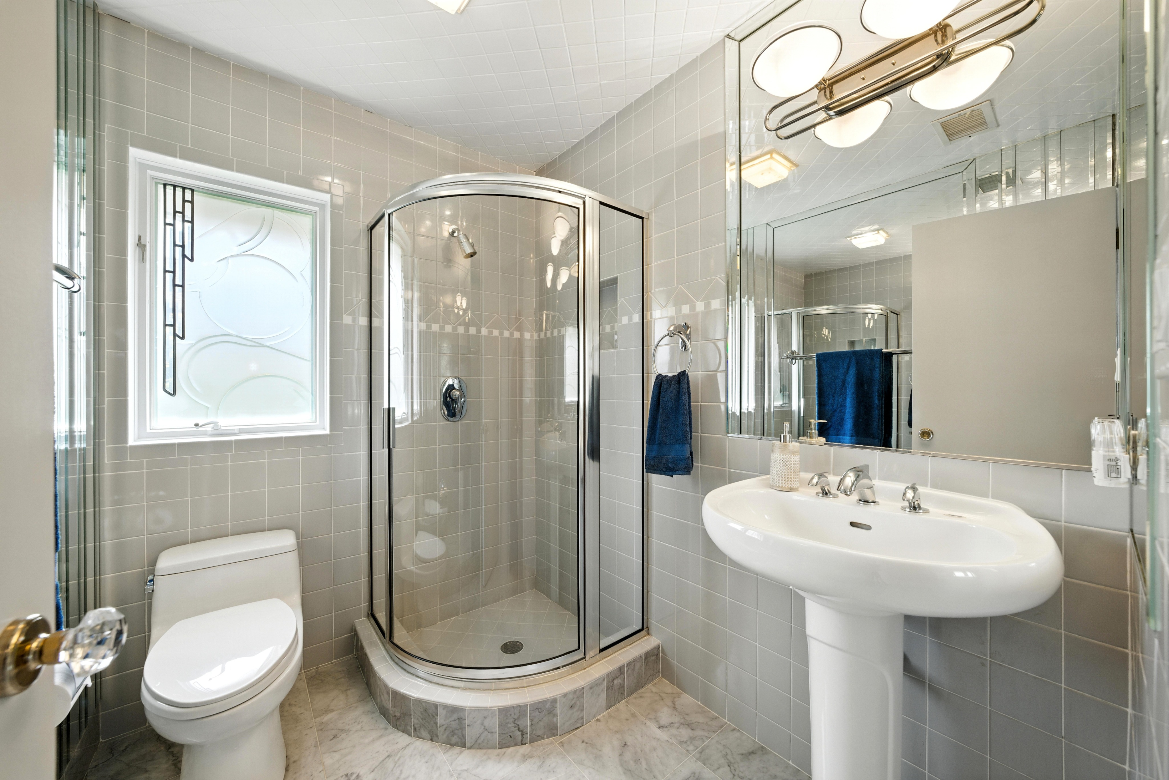 please redesign this bathroom please make a walk in shower on one wall if possible make it feel like a luxury classic coastal full bathroom
