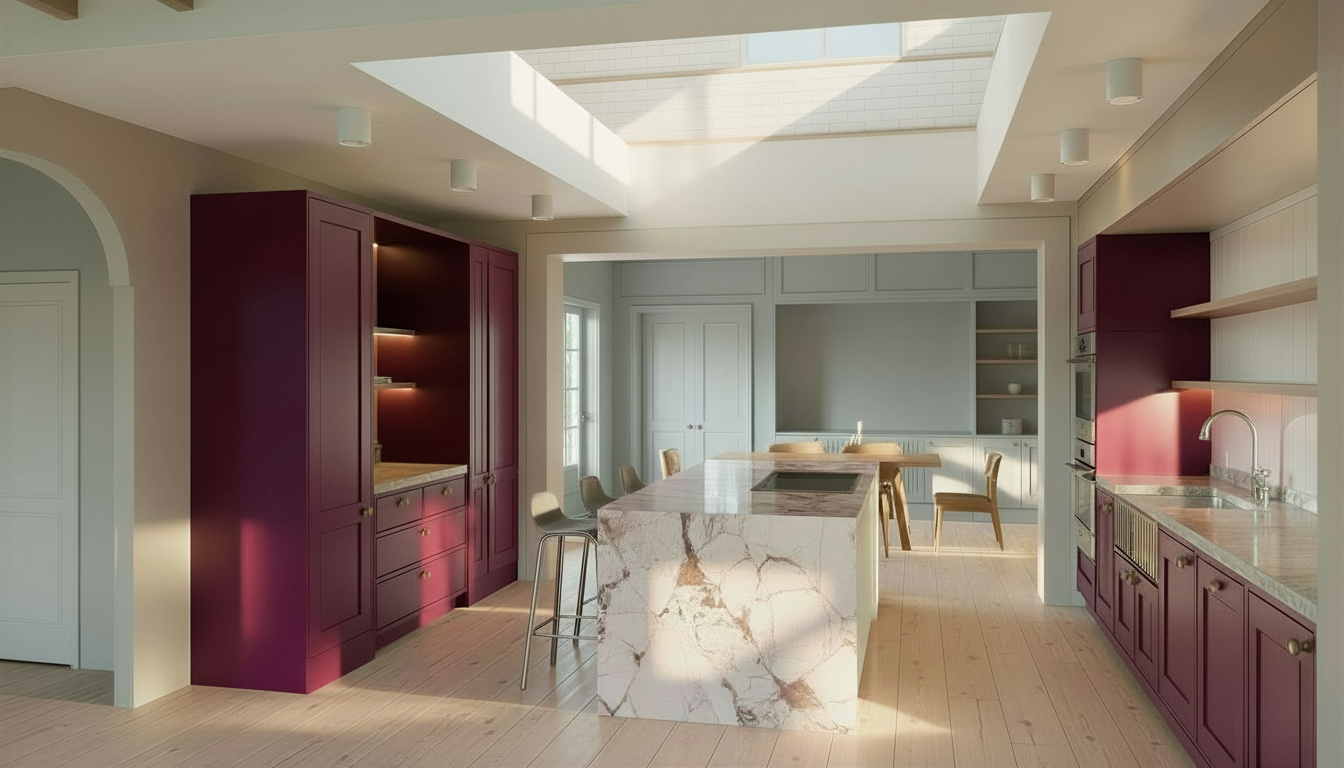 important do not change the geometry proportions or camera position only enhance materials lighting reflections and the landscape do not add wooden pavement or decking outside the construction footprint goal create a high quality exterior architectural rendering that looks like a professional architectural photograph the image should emphasize realistic reflections on the glass refined material textures and a balanced natural environment inspired by scandinavian architecture and minimalism the atmosphere should feel calm natural and harmonious exterior materials structural frame exposed pillars and beams in matte black steel exterior walls black charred wood cladding japanese shou sugi ban style installed vertically window frames black pvc minimal and modern flooring wide oak type wooden planks dark wood tone but not black exterior corridor ceiling black wooden boards visible wood grain dark stained finish landscape natural environment with a mountain in the background with gentle slopes not steep trees surrounding the house integrated naturally with the landscape natural terrain and vegetation around the building no wooden decking or wood pavement outside the building area lighting soft late afternoon light with warm tones subtle warm artificial lighting from the interior visible through the windows realistic glass reflections and soft shadows rendering style photorealistic architectural photography scandinavian aesthetic reference calm balanced composition realistic materials and textures natural light and high quality reflections