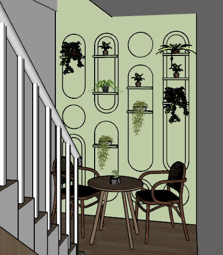 make ultra realistic image without changing any structures shapes design and materials do not change the jpeg size wood vinyl flooring add sky light in the stair green wall panels and shelves