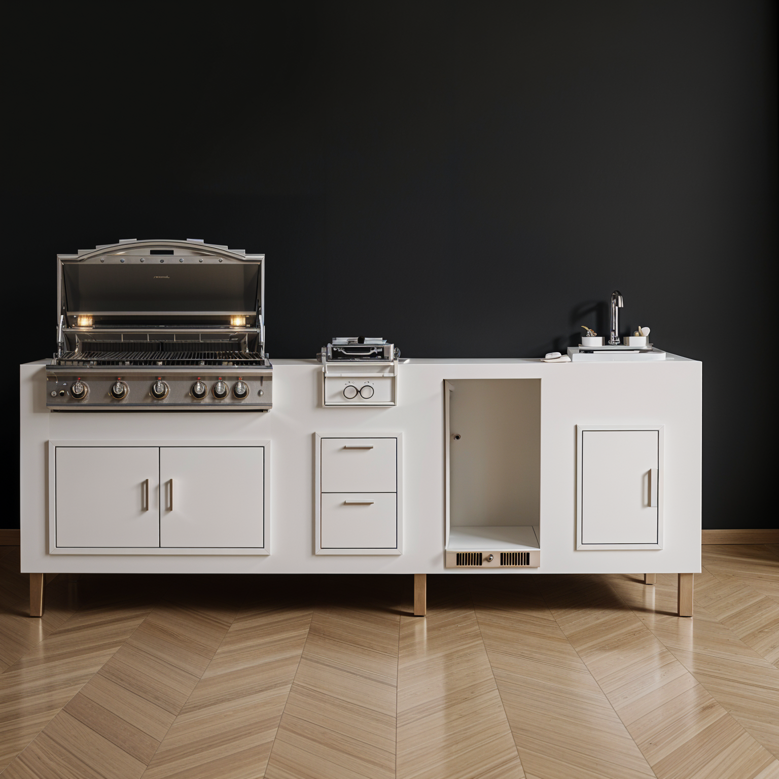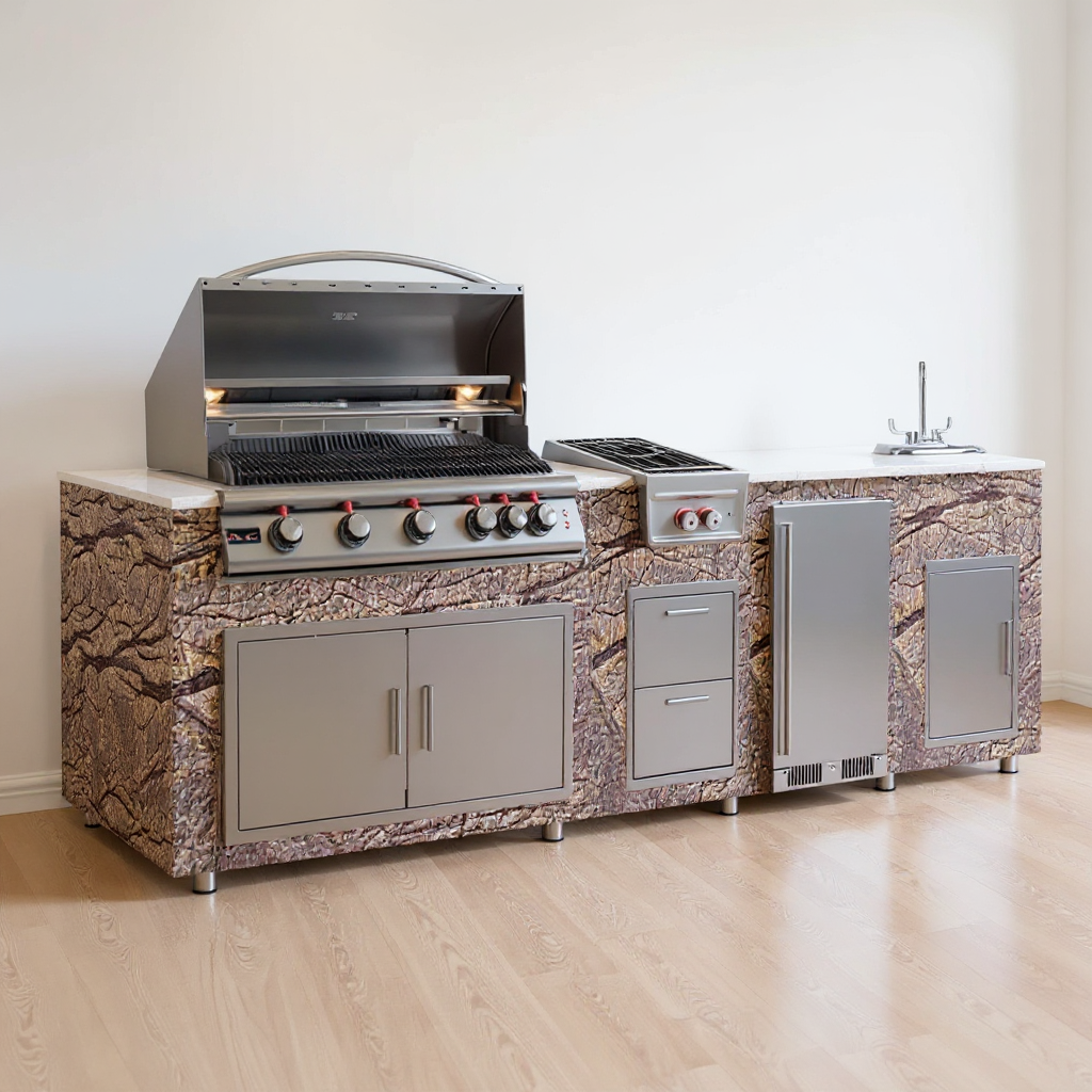 add a white countertop and small stainless steel legs maintain photo colors