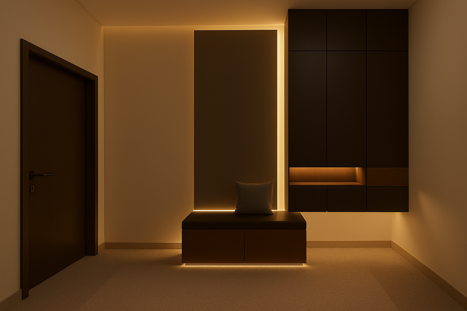 interior shot interior of a michelin star restaurant in nashville tn moody atmosphere with dim accent lighting and luxurious furniture and textures throughout realistic upscale
