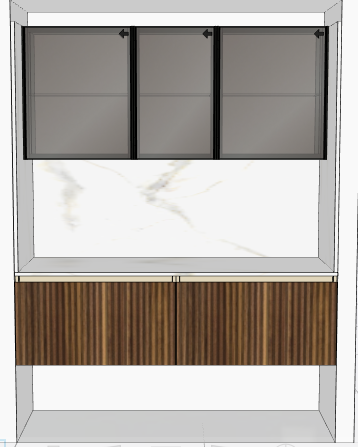 ultra photorealistic interior kitchen render based on the reference photo create a super realistic photographic result upper cabinets must be smoked glass display cabinets fum glass internally illuminated with soft warm integrated lighting add under cabinet lighting below the upper units subtle and realistic used only to enhance materials not decorative all finishes must remain highly realistic and true to real materials wood effect surfaces must be fluted walnut canalettato walnut with vertical grooves natural walnut tone matte finish no gloss the wood must look authentic with visible depth and realistic shadows between the flutes countertop and backsplash must be glossy porcelain stoneware polished gres porcellanato with clear reflections typical of ceramic surfaces glossiness must apply only to the countertop and backsplash not to cabinet fronts lighting must be physically accurate and balanced natural daylight combined with integrated artificial lighting no cinematic or dramatic lighting effects maintain realistic proportions materials edges joints and thicknesses architectural photography style eye level camera natural perspective 35 45mm focal length straight vertical lines high realism global illumination clean shadows professional catalog quality result