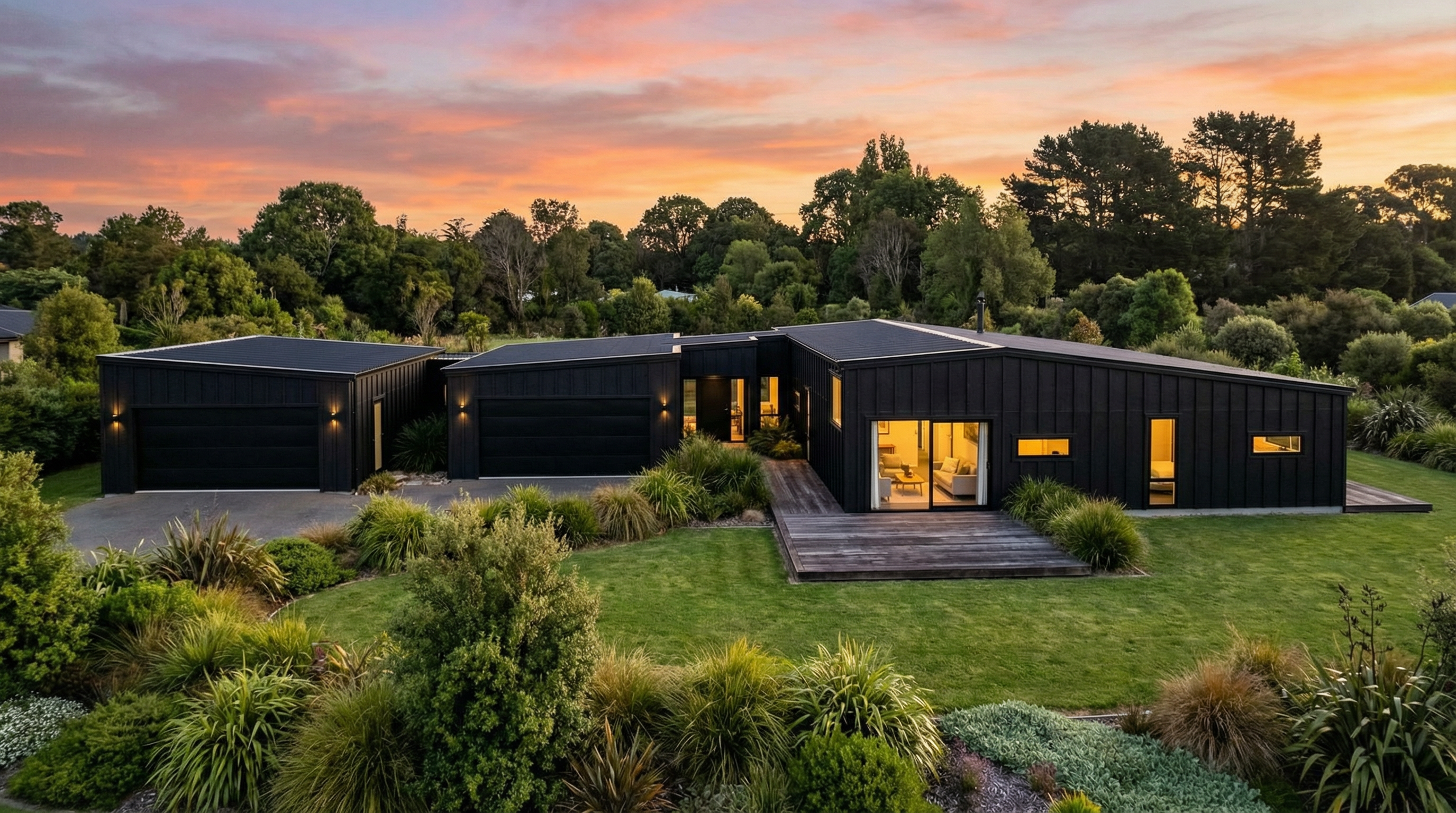 render the elevation of this thatch roof restaurant timber deck to front add landscaping and 5x black people plaster walls are beige south african bushveld background