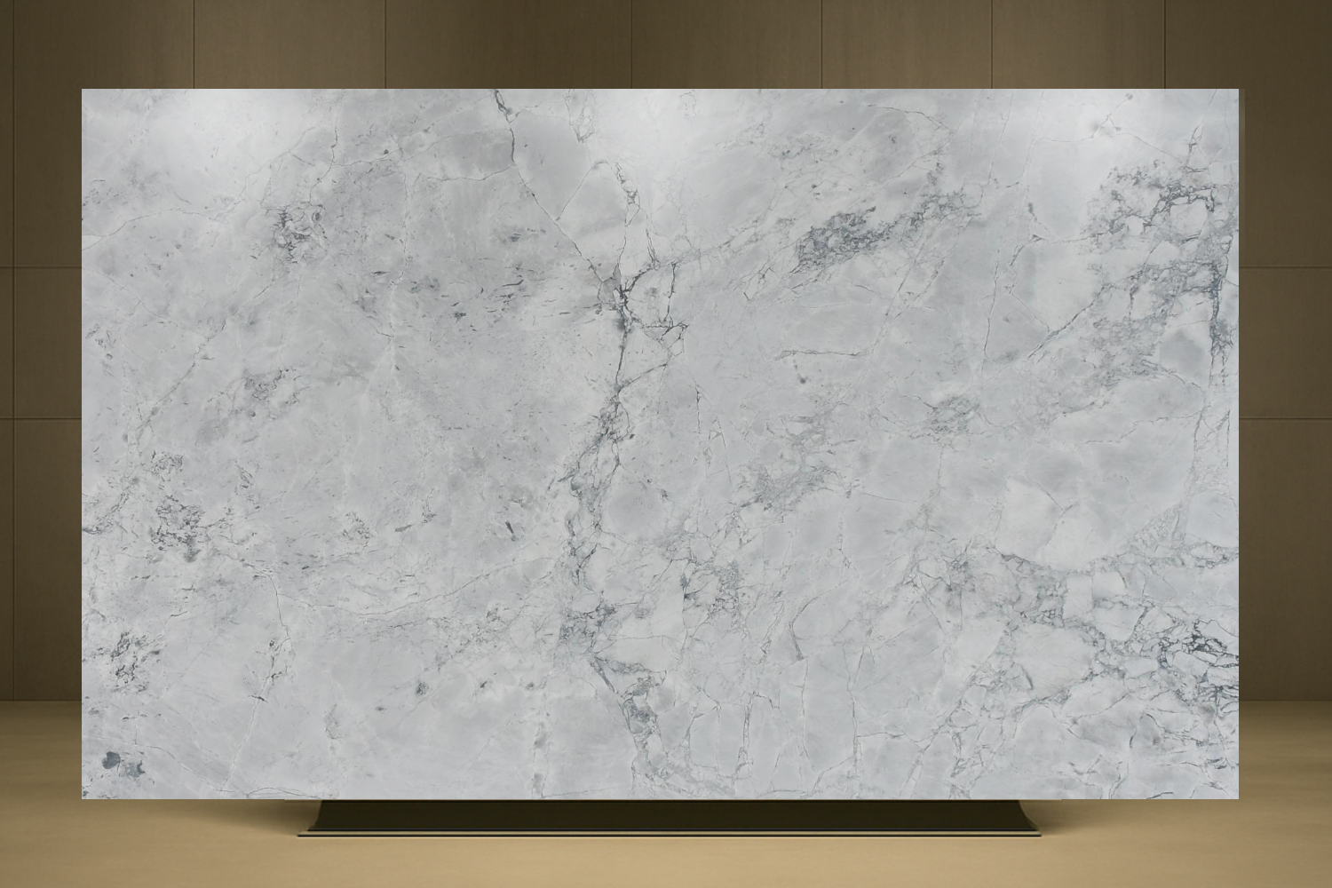 render a high end designer colorful moodboard with this grey goose marble slab featuring paint colors wallpaper wood samples leather samples tile samples and coordinating metal fixtures