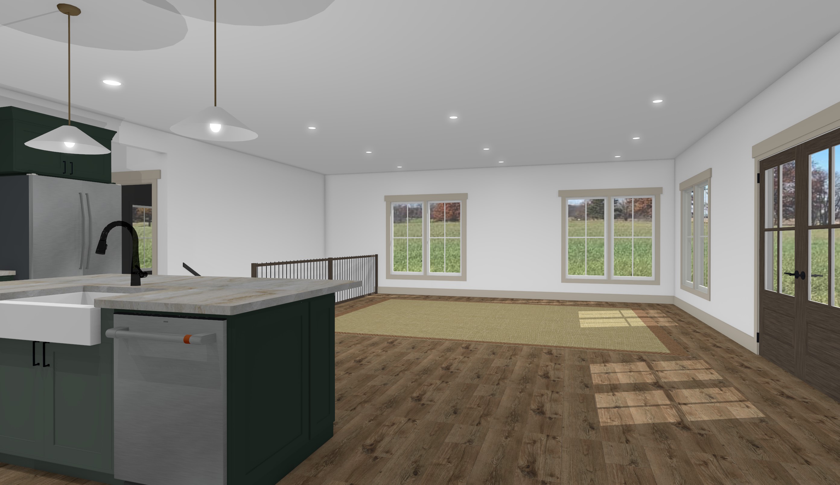 make this image a photograph of a cozy home with the lights on a sisal area rug