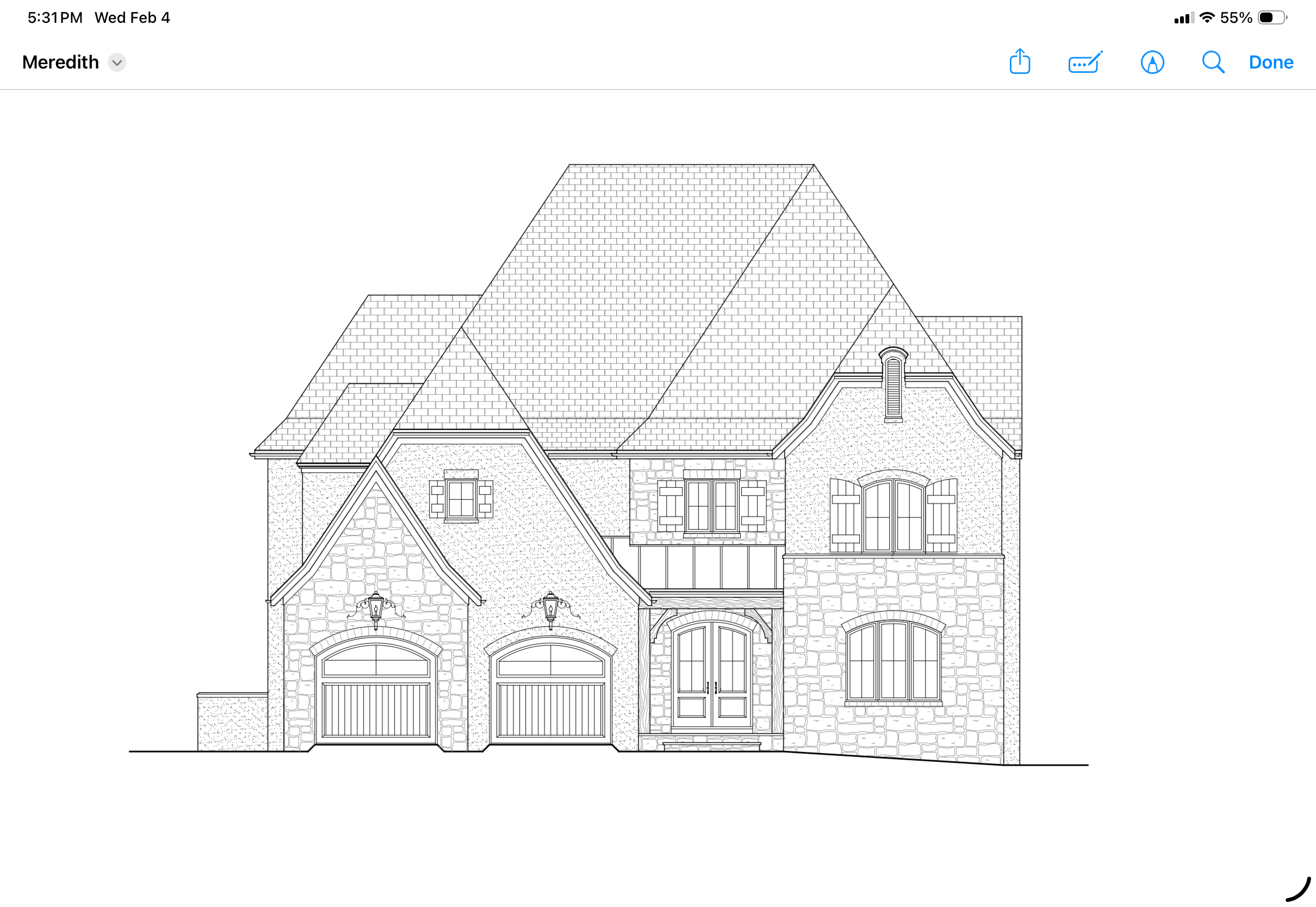 golf course community light beige brick and light colored stone black roof and windows lush landscaping and vibrant blue sky maintain all details glimpse of golf course back right corner
