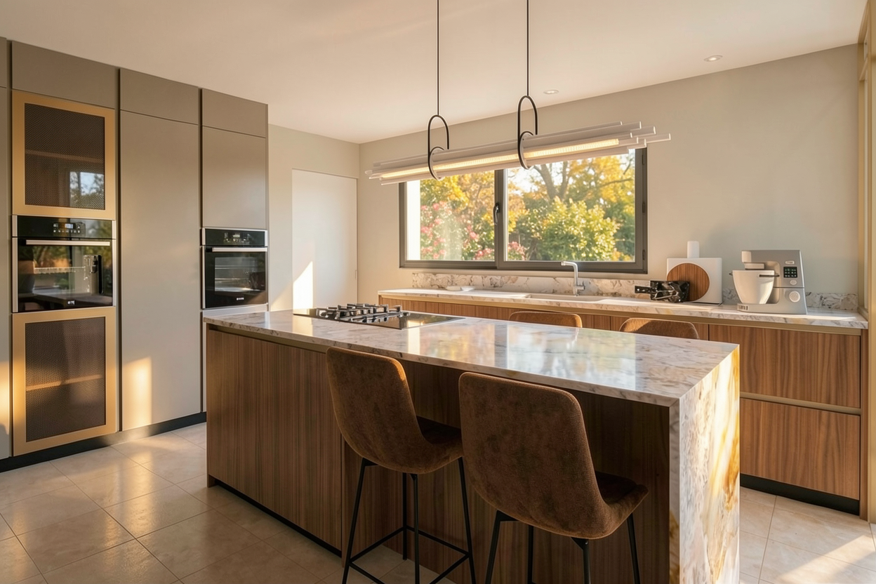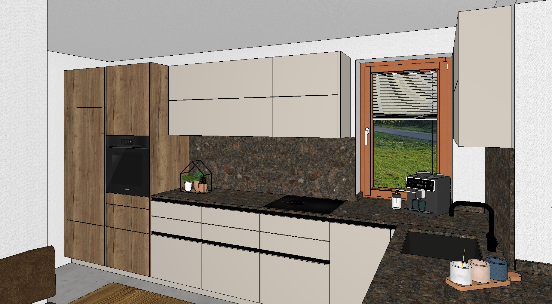 add lightening under the wall cabinets and on the ceiling the room should be bright