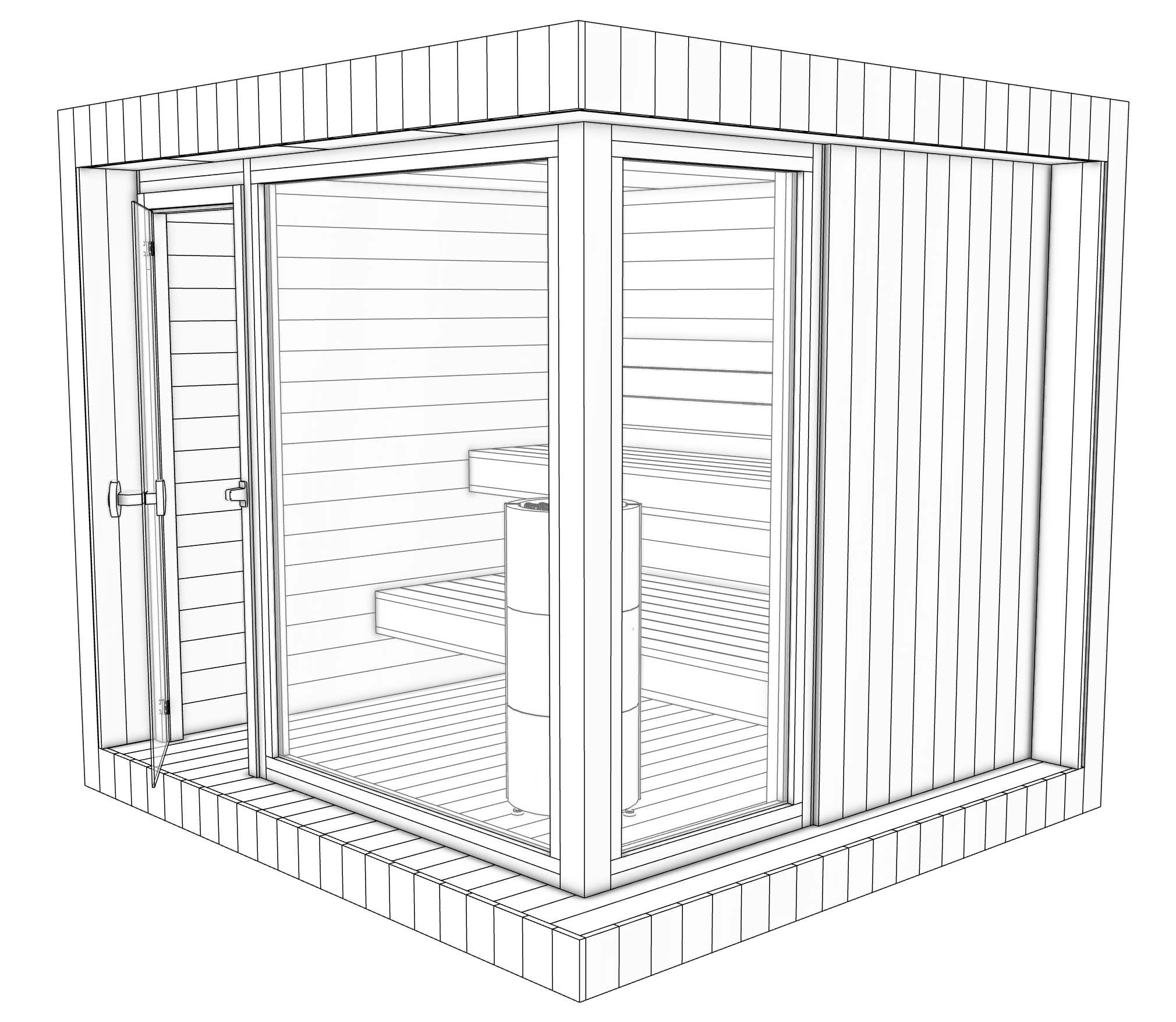 archsynth edit prompt eclipse black geometry lock use the provided reference image as the exact base do not change geometry in any way no resizing no moving elements no changing proportions no adding removing windows frames panels bench layouts roof shape base deck keep identical camera angle perspective framing and all lines keep all openings and glass positions exactly as shown style material target kubiq eclipse black premium minimal architectural exterior cladding key change replace all exterior wall cladding with deep black charred wood shou sugi ban look vertical board orientation okomito clean consistent spacing matte to satin finish rich carbon black tone not grey not anthracite subtle wood grain light texture premium craftsmanship crisp edges glass frames profiles no metal all visible glass frames mullions corner posts and surrounding profiles must be black wood charred wood no metal parts visible anywhere no aluminum no steel no chrome frames are clean minimal sharp seamless wood joinery look keep frame thickness and geometry exactly as in reference material change only interior thermo alder interior wall cladding and benches in thermo alder warm medium to dark brown premium smooth finish subtle natural wood grain evenly toned high end sauna interior look do not change bench layout sizes or heights material color only glass neutral to slightly smoked grey glazing realistic reflections keep glass positions and sizes exactly as shown roof trims base keep geometry maintain the same roof lines trims and base deck geometry any trims that are not specified as glass frames should remain minimal and dark do not introduce metal lighting mood dark premium high contrast studio mood soft controlled highlights on edges no overbright lighting clean background architectural visualization feel negative do not do do not introduce any new design elements handles vents ornaments extra lights signage do not change cladding pattern to horizontal must be vertical do not modernize by altering frame thicknesses or adding extra mullions do not add interior objects or accessories do not warp lines do not stylize into cartoon anime keep photoreal archviz output goal photoreal architectural render of the same sauna with eclipse black identity vertical charred wood exterior black wood glass frames no metal thermo alder interior smoked glass identical geometry and composition