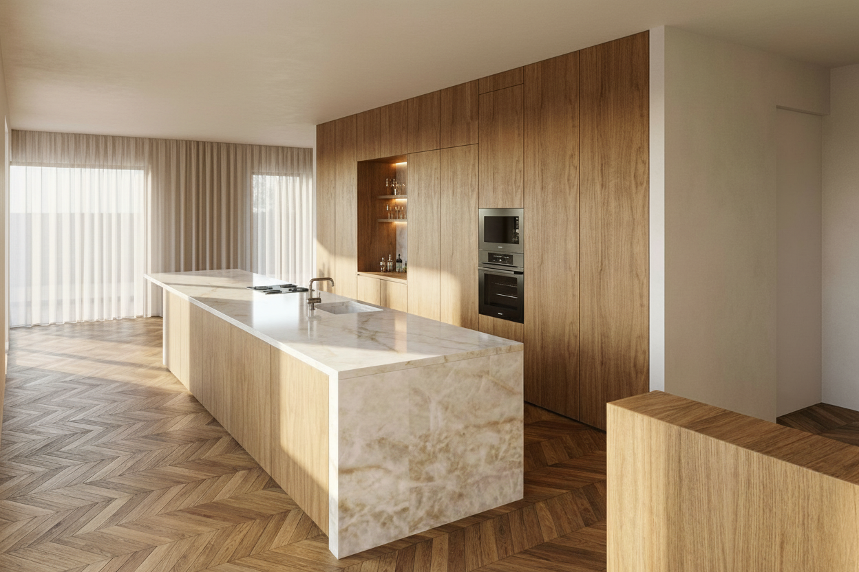 change interior door to be brown oak add dining table and wood dining chairs in corner