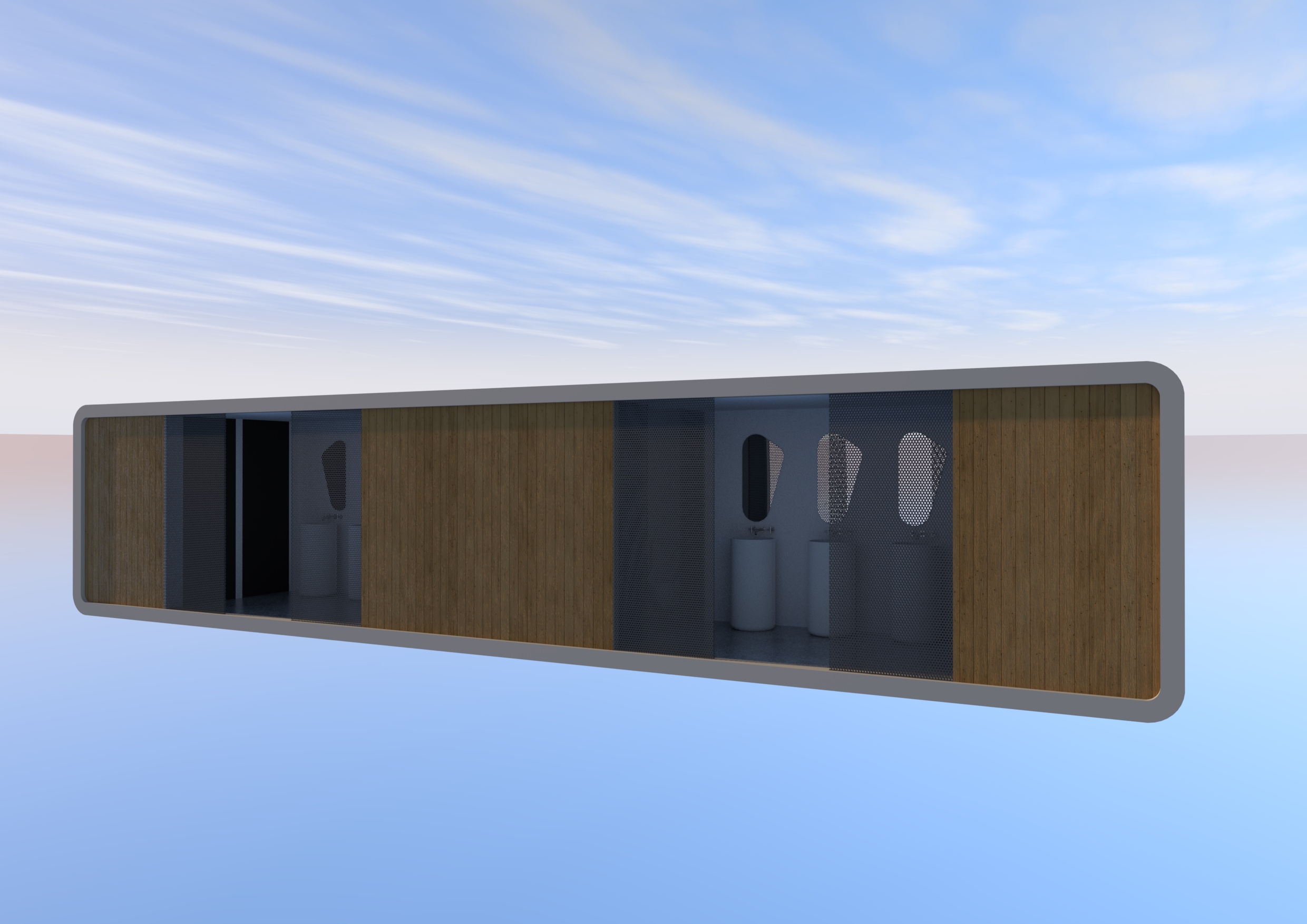 environment beach setting with sandy dunes and natural undulations vegetation must be scale accurate romanian seaside flora such as small dune grasses low shrubs and delicate wildflowers background must not show the sea only dunes sky and distant small shrubs are visible lighting is subtle natural daylight with diffuse soft shadows and no harsh sunlight a slight aerial haze may be introduced to enhance depth and a very soft volumetric atmosphere is optional the horizon must remain low to emphasize architectural scale scale perception must be anchored only by small flora and dune formations with no oversized vegetation architecture preservation very important the original image geometry proportions layout openings structural elements net panel locations and overall composition must remain completely unchanged no new architectural elements may be added no existing elements may be removed resized repositioned or redesigned all interventions must be limited strictly to texture enhancement material realism improvement lighting refinement and environmental context creation net panels privacy enhancement all existing net or mesh panels must retain their exact dimensions frames positioning rhythm and structural logic only the material density must be increased the weave must appear tighter and visually denser to improve privacy while still reading as a lightweight architectural mesh transparency must be reduced in a natural and realistic way without turning the panels into solid surfaces subtle depth fiber thickness variation and realistic light diffusion through the mesh should be visible materials and texture enhancement all existing visible materials must be enhanced using high resolution photorealistic textures wood surfaces should appear as warm teak with pronounced natural grain subtle weathering variation and soft natural reflectance metal surfaces should read as aluminum with a gentle metallic sheen and restrained realistic reflections glass surfaces must have physically accurate transparency and subtle environmental reflections without mirror like intensity the contrast between warm wood and cool metal must remain readable but natural under diffuse daylight panel layout fa ade rhythm joints framing and detailing must not be altered camera and composition the original camera position framing and perspective must be fully maintained a slight depth of field may be introduced so that the architecture remains fully sharp while the background becomes softly diffused the perspective must continue to read clearly as full scale architecture the composition must remain clean and cinematic with the environment supporting the subject rather than competing with it rendering style photorealistic architectural visualization with high fidelity textures and physically plausible lighting shadows must be soft and realistic with subtle reflections on metal and glass color grading must remain natural and neutral in daylight tones that enhance material readability a minimal vignette is optional the overall mood must feel calm realistic and like a believable outdoor coastal setting