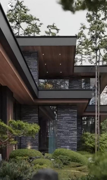 exterior shot property type modern contemporary residence facade materials primary natural stone walling secondary millboard oak cladding contrasting against stone fenestration bronze framed windows bronze fascias soffits oak clad soffit boards glazing large full height glazing for openness and light roof green wildflower living roof natural meadow style planting architectural mood sleek warm organic blending natural textures with modern lines color palette warm earth tones stone oak bronze metallic accents natural greens style reference contemporary modern with sustainable detailing