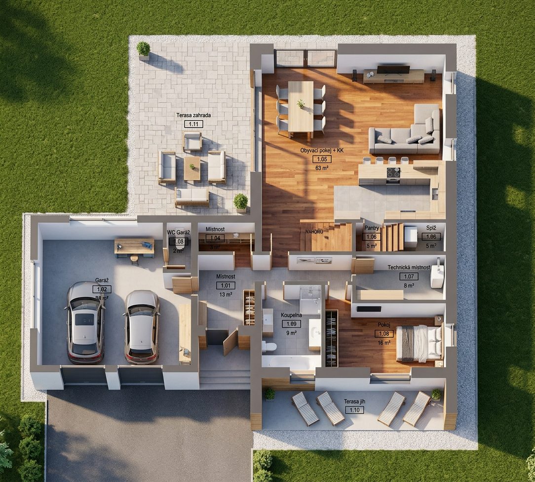 make a photorealistic full hd axonometric image dont change ecerything else keep the textures the details the same