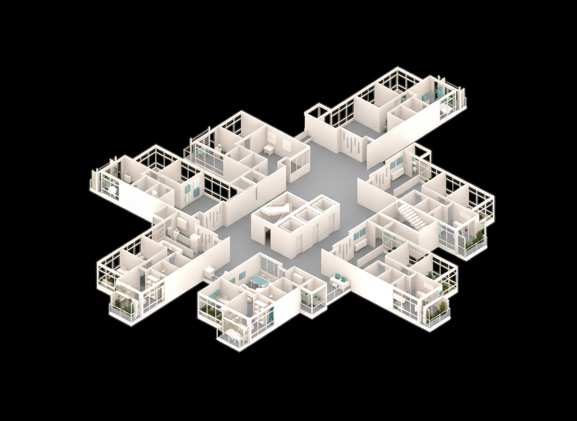 photorealistic architectural rendering of a contemporary designer reception area enhancing an existing revit base image introduce soft atmospheric depth and moody intimate lighting refine materiality to feel tactile and true to life glazing with realistic reflections and slight interior transparency add understated warm interior lighting 2700k 3000k to create a soft glow overall mood should be warm calm and evocative slightly ethereal but grounded in realism avoid overly dramatic contrast or stylisation aim for a premium architectural photography aesthetic with a cinematic softness floor should be exposed concrete ceiling is exposed concrete with exposed services curtain behind reception desk is a soft linen reception desk front is an earthy textured tile timber bench on the left side with muted green fabric the wall on the right side is cork lining with timber strapping