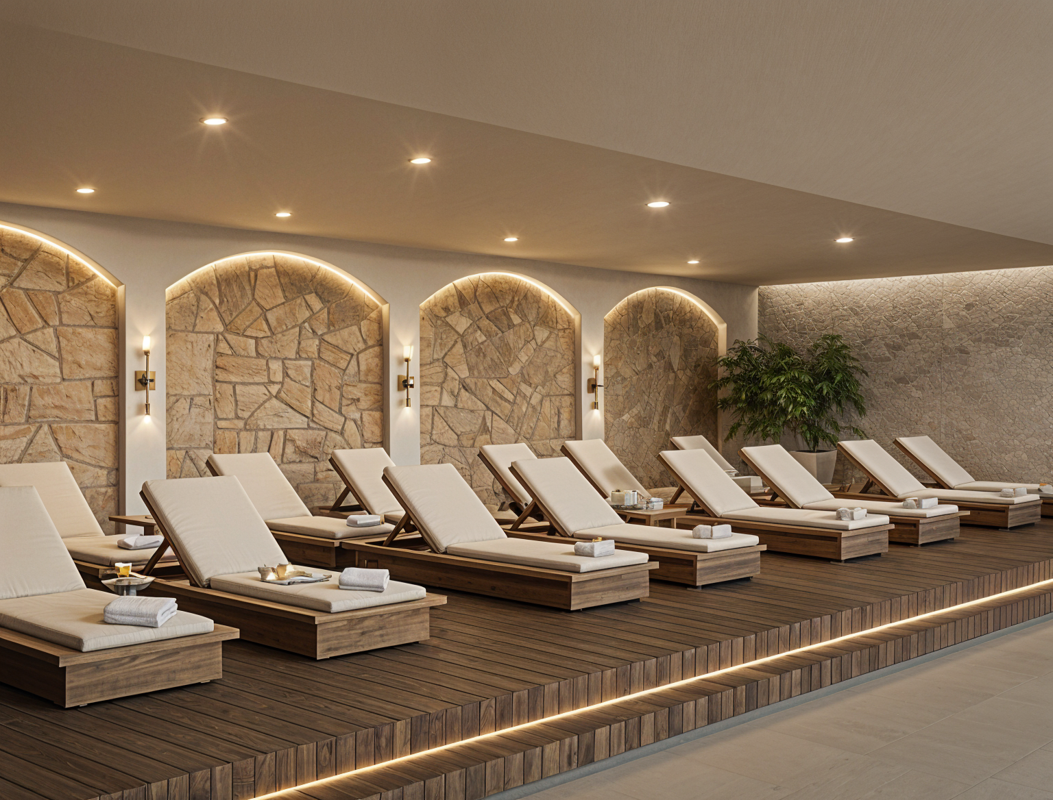 high gloss lacquered light wood logo in matte bronze metal text white front lit portal in matte bronze metal door glass frosted