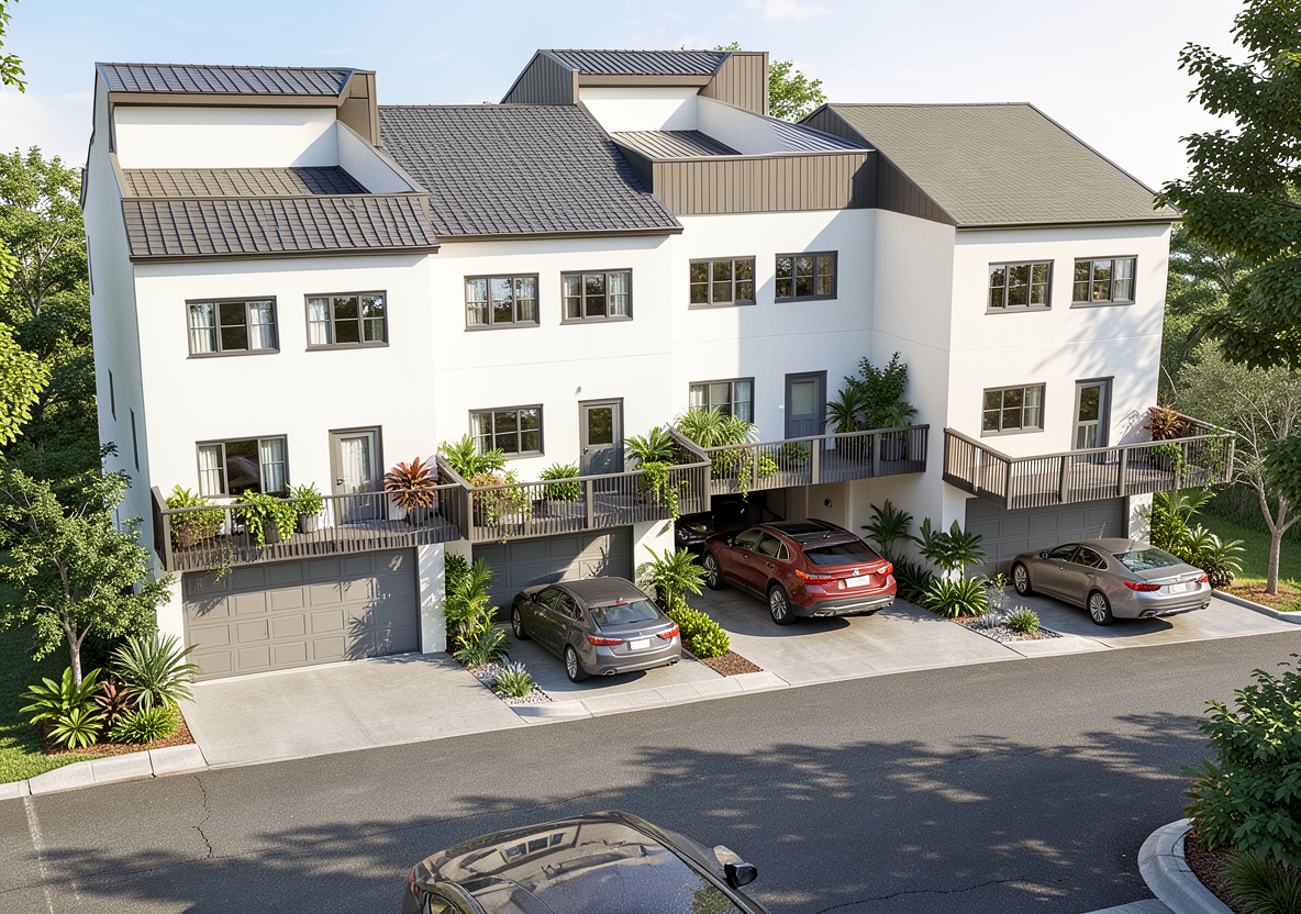 do a front view the front has side walks instead of garages planting around the sidewalk in the front and the sidewalk connects into a sidewalk that connects to every town home it goes across the whole bottom of the site near the road