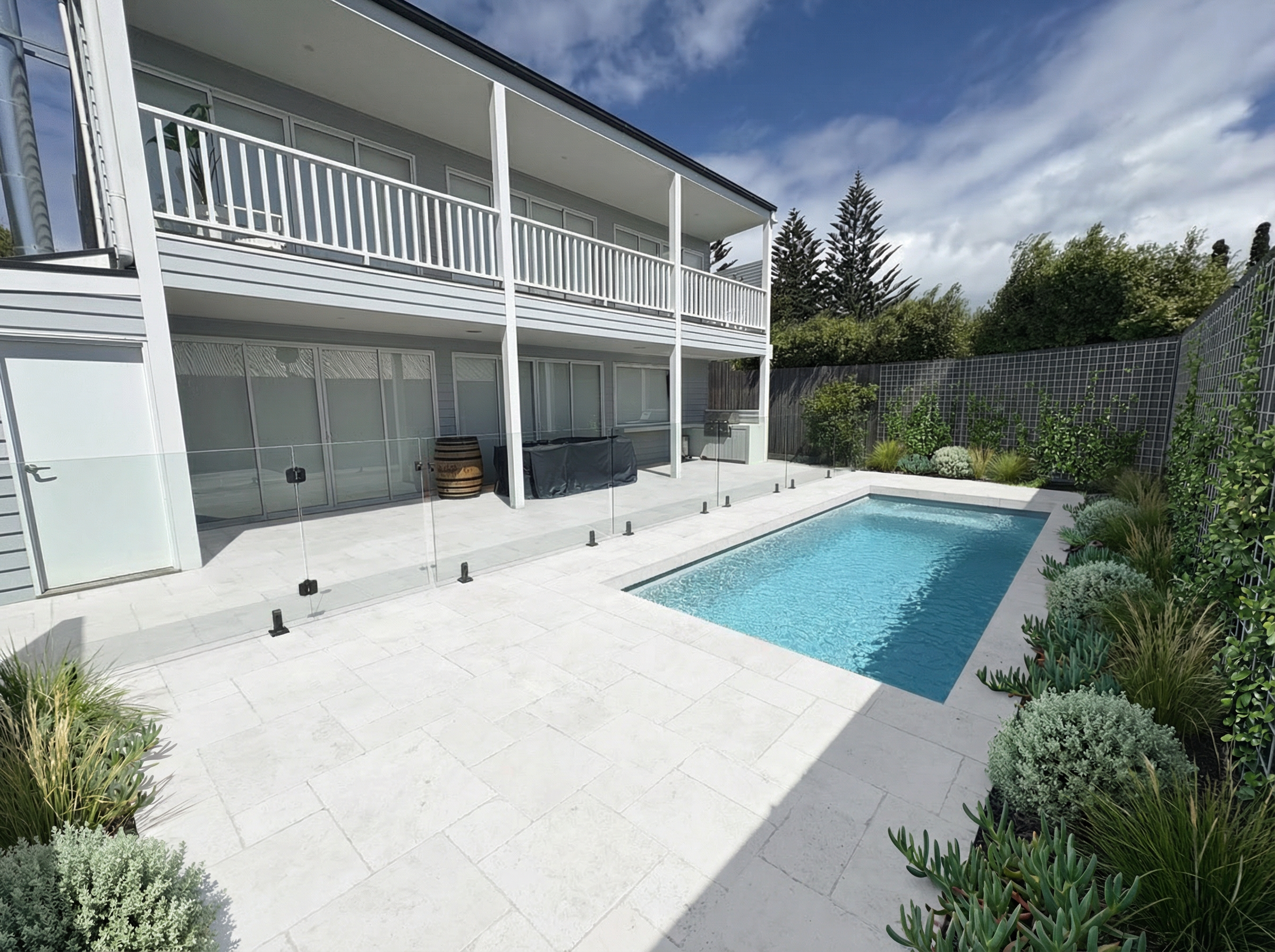 can you reduce the garden bed along the pool lenght to 300mm put the citrus tree in a pot and change the paving to sandy with grey in it