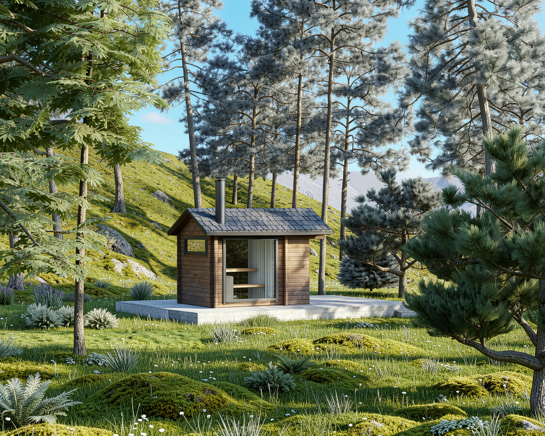 exterior of building in an urban environment windows are tintend very dark exterior pillars are all white awning over bottom windows is cream beige fabric with a black flange piping on the edges split into two at the middle to accomodate the length make planter boxes under bottom windows all white including the support brackets make the plantings in planters under windows more organic visually with flowers and greens the wall that pops out on the second story is a darker beige stucco than the white lower recessed portion of the face