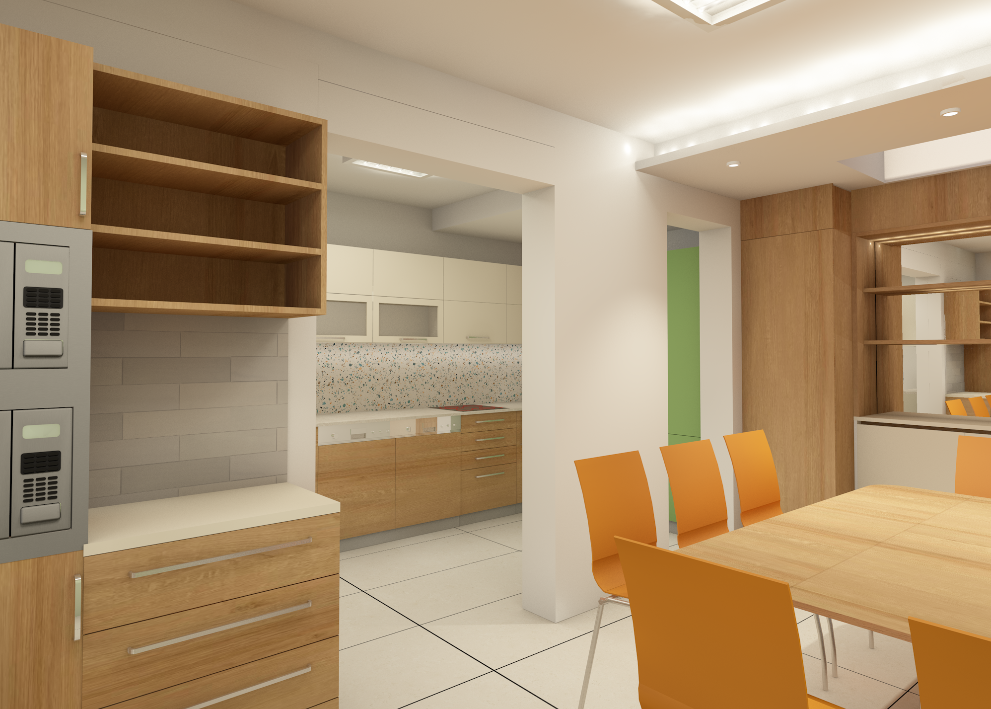 create a photorealistic professional lifelike visual plan the wood tones are light in a natural oak color