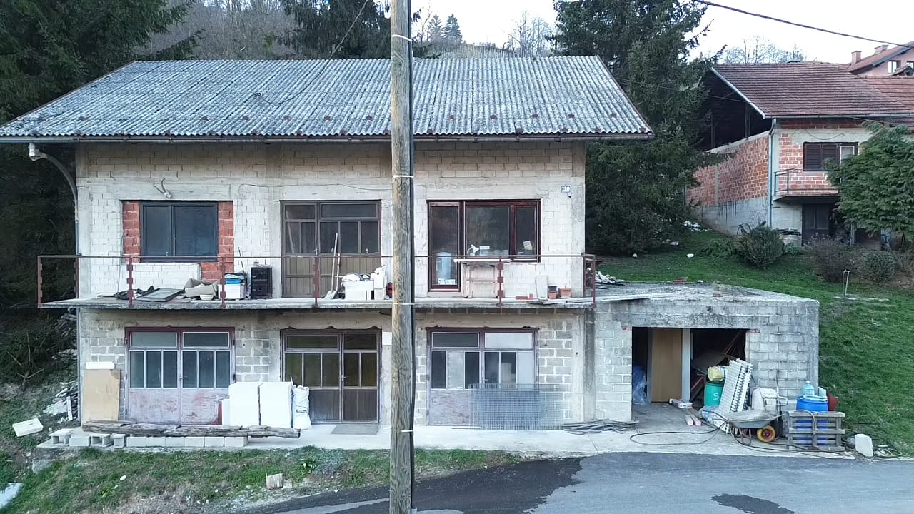 facade is completely new in light beige color roof is in brick red color doors and windows are new and in white color garage is in light beige color also and on the garage roof there is grey concrete slab and metal rail remove every furniture rail on balcony is black metal
