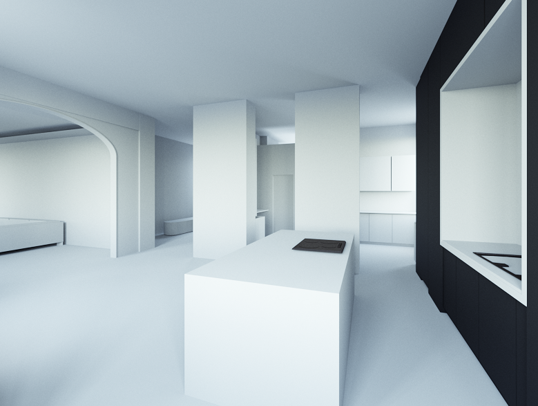 render this kitchen living room with parquet on the floor