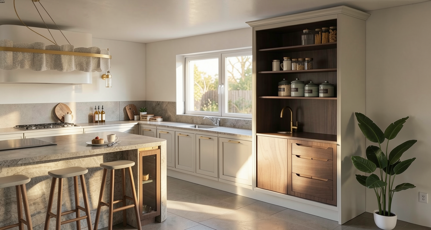 red multistock brickwork laid stretcher bond open side timber framed porch with pitched gable roof timbers painted in white to match windows white painted upvc casement windows with astragal bars black front doors clay roof tiles in a warm red brown tone laid flat bonnet tiles on hips roof lights only no dormers soft natural daylight with realistic shadows ultra realistic textures architectural photography style remove all text from image sunny background white floral landscaping under windows small grass area with gravel paths up to front doors add a small white painted timber picket fence positioned vertically between the two front doors