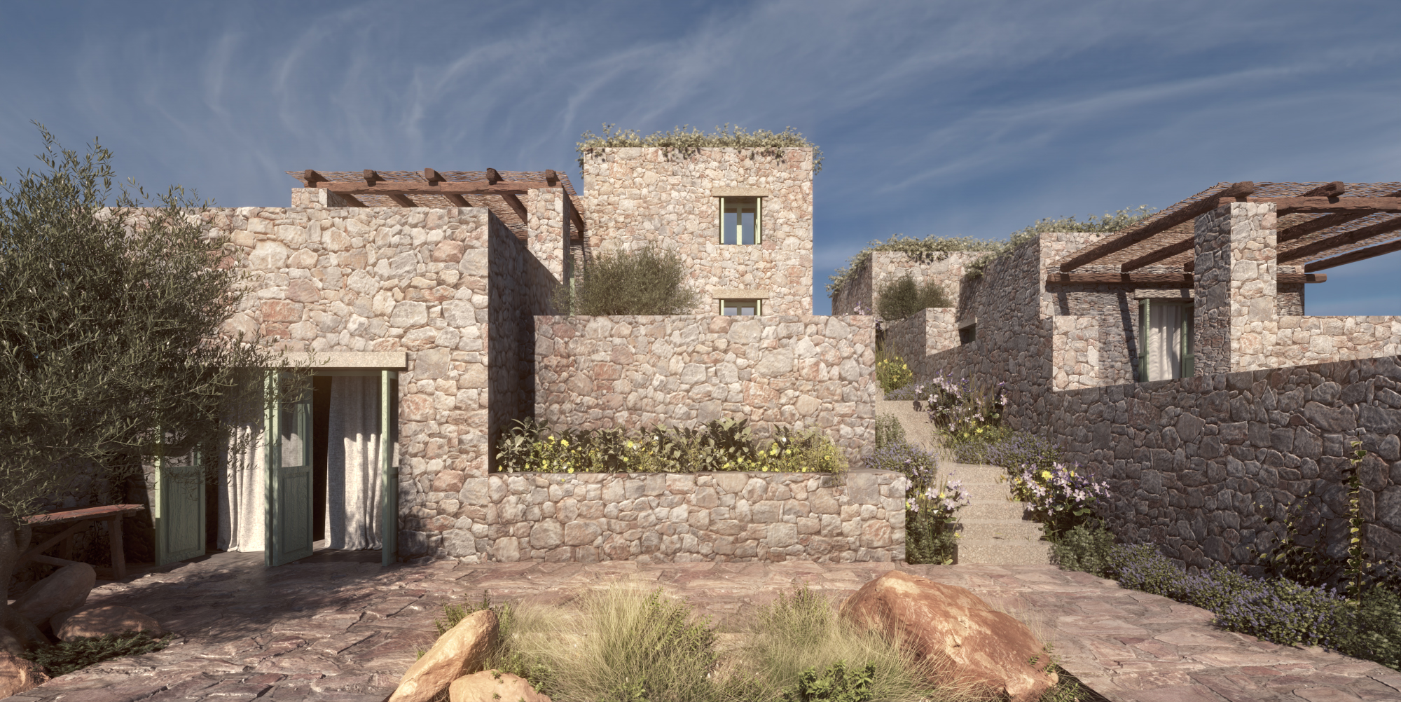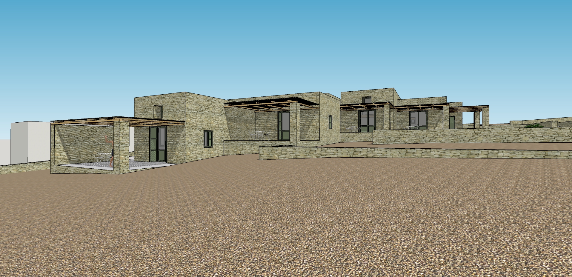 exterior shot i want you to render the first picture by using the mood and the materials of the second