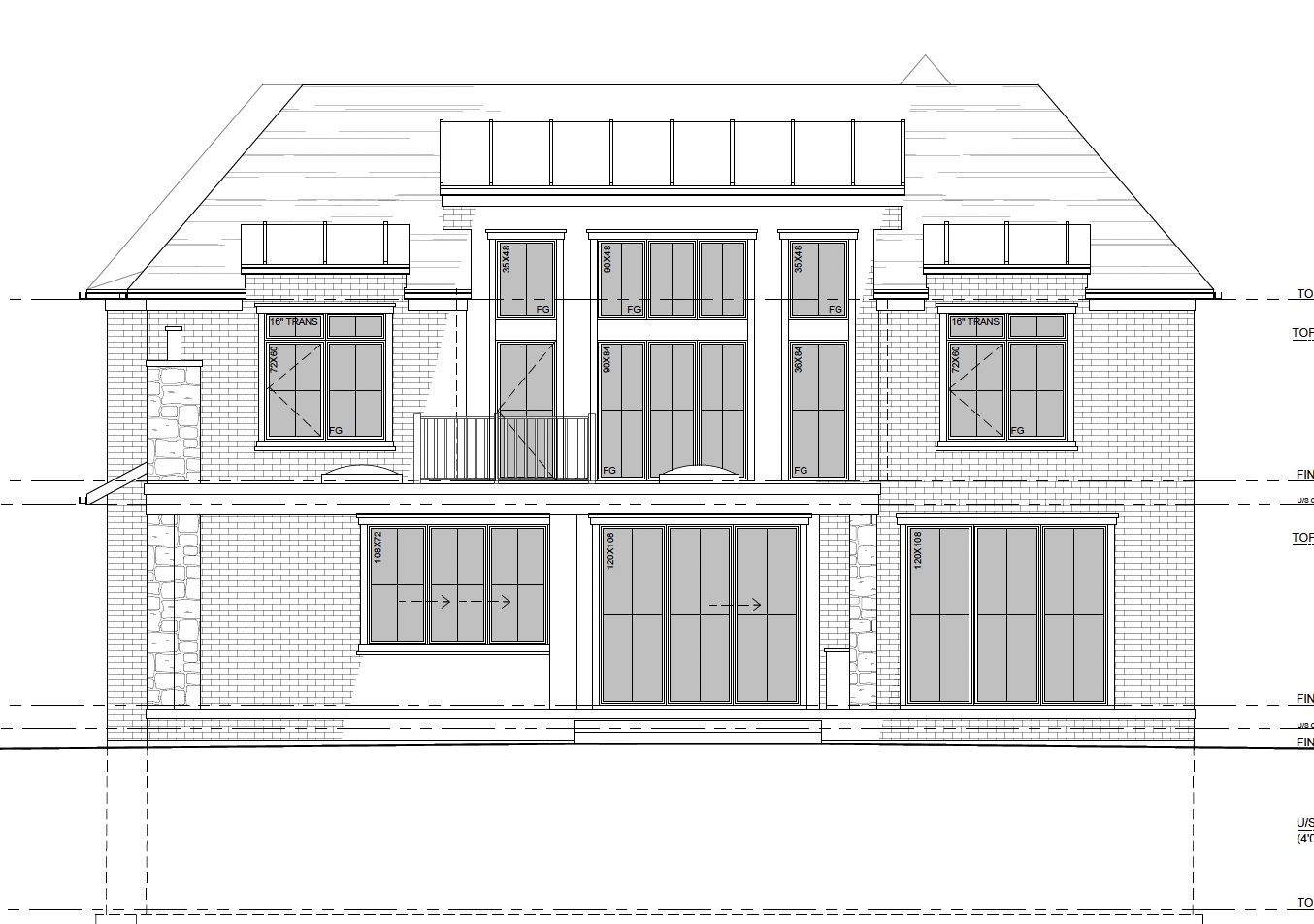 modernist exterior shot make the brick grey take out the railing on top of the windows on the second floor architecture
