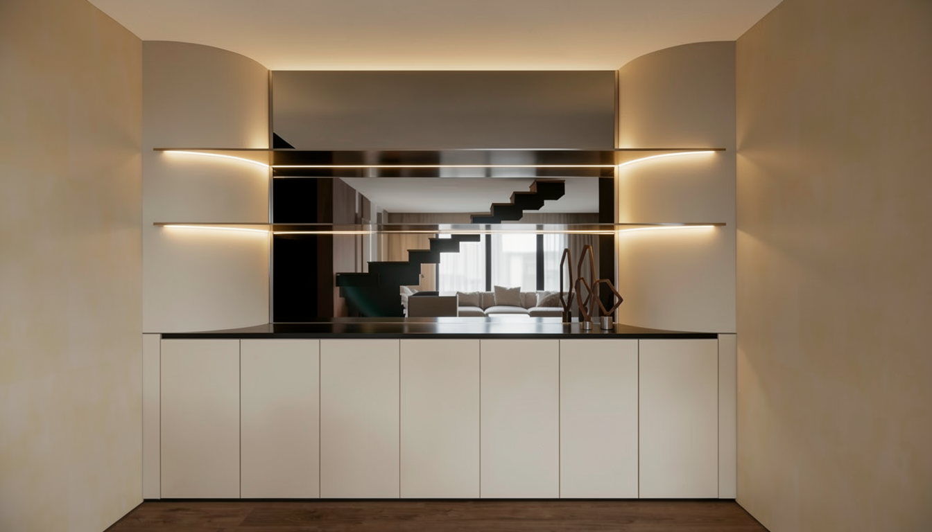 transform the uploaded white model of the atrium into a grand cinematic neoclassical interior staged as if anish kapoor created a temporary installation in the space preserve all geometry exactly as modeled architecture finishes walls columns balustrades warm ivory stone extremely fine and subtle texture elegant and sculptural windows deep black lacquer glossy reflecting ambient light metallic elements aged brass on railings and fixtures catching warm directional highlights floors and terraces honed pale stone slightly reflective grounding the installation subtly decorative elements burgundy accents kapoor style introduce large sculptural burgundy forms as the central decorative elements smooth fluid and monumental shapes suspended from terraces or positioned on floors terraces organic curves voids or bulbous forms reflecting light and shadow dynamically highly reflective or semi gloss surfaces that interact with candlelight ambient light and the architecture shapes should feel immersive sculptural and otherworldly integrating naturally with the verticality and grandeur of the atrium burgundy is deep rich and theatrical serving as both color accent and sculptural anchor minimal additional objects the forms themselves act as art focus and narrative lighting atmosphere cinematic chiaroscuro inspired by caravaggio deep shadows and warm directional highlights sculpt walls columns and the sculptural burgundy forms hidden uplights and candlelight pools accentuate sculptural curves reflective surfaces and vertical lines slight volumetric haze enhances depth painterly quality and drama light interacts dynamically with reflective burgundy surfaces creating subtle glints and soft reflections glass roof reflections glass panes show deep indigo twilight subtle reflections bounce on black lacquer windows and brass elements light passing through the glass emphasizes height verticality and sculptural drama camera composition eye level or slightly upward perspective capturing atrium height and sculptural forms cinematic 50mm full frame equivalent lens symmetrical yet alive composition sculptural burgundy forms guide the eye dynamically through the space color palette warm ivory pale stone aged brass metallics deep black lacquer windows monumental burgundy forms rich reflective immersive candle gold highlights indigo twilight sky through glass ceiling mood storytelling luxurious immersive dramatic and mysterious burgundies as sculptural installations art as architecture integrated into the atrium evoking both sensuality and refinement scene feels like a high design gallery or luxury hotel installation frozen in a cinematic moment with painterly depth and sculptural presence if you like i can also make a kapoor ultra dramatic version where multiple burgundy forms cascade vertically some suspended from balconies some rising from floors curves and voids play with reflections shadows and candlelight the atrium itself becomes part of the artwork fully immersive painterly and cinematic